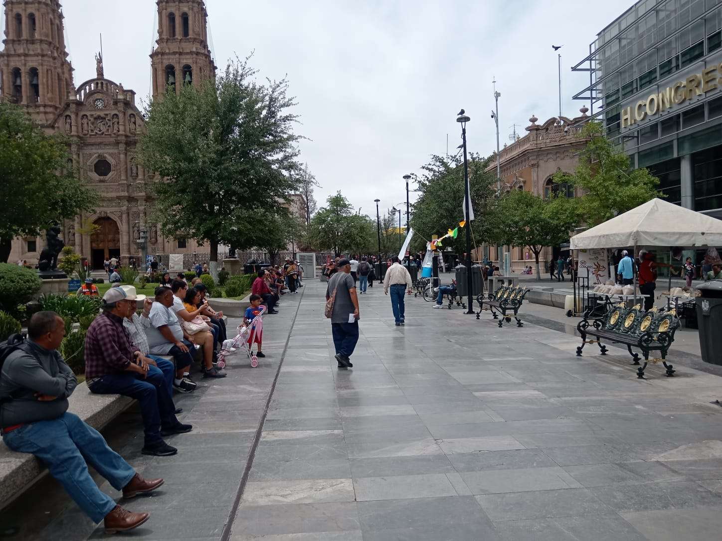 Aunque la frescura matutina cedió paso al sol, el flujo de personas en el Centro Histórico se mantuvo constante. En la calle Libertad, grupos de adultos mayores se congregaron para escuchar las baladas y corridos que marcan la identidad del norte, mientras los músicos afinaban sus instrumentos ante una audiencia expectante.