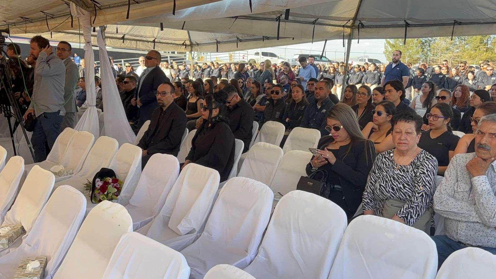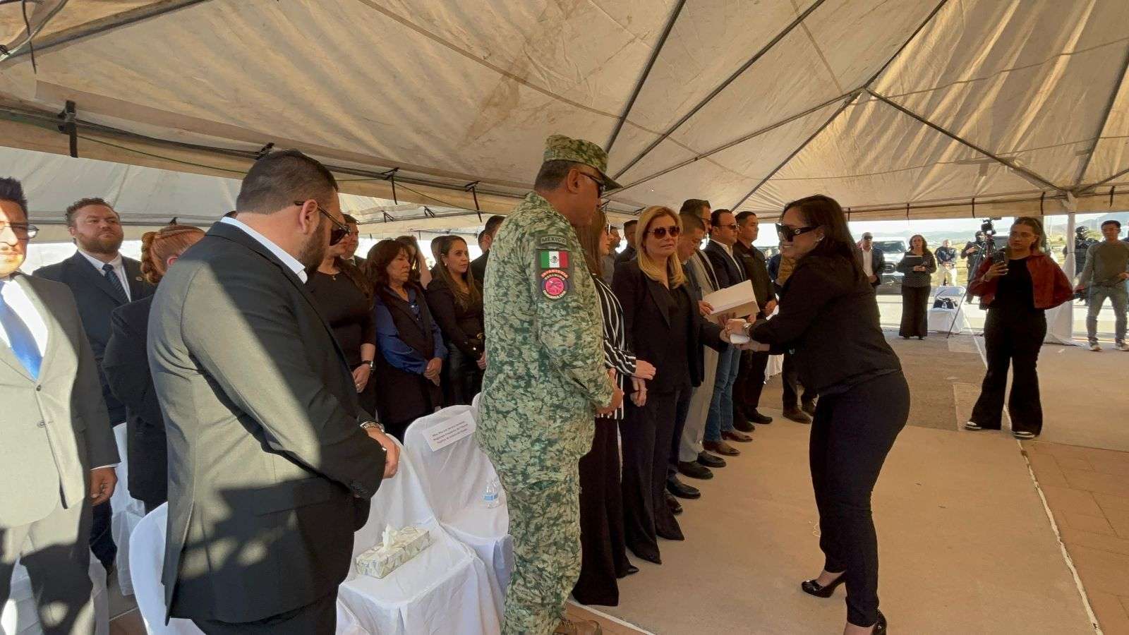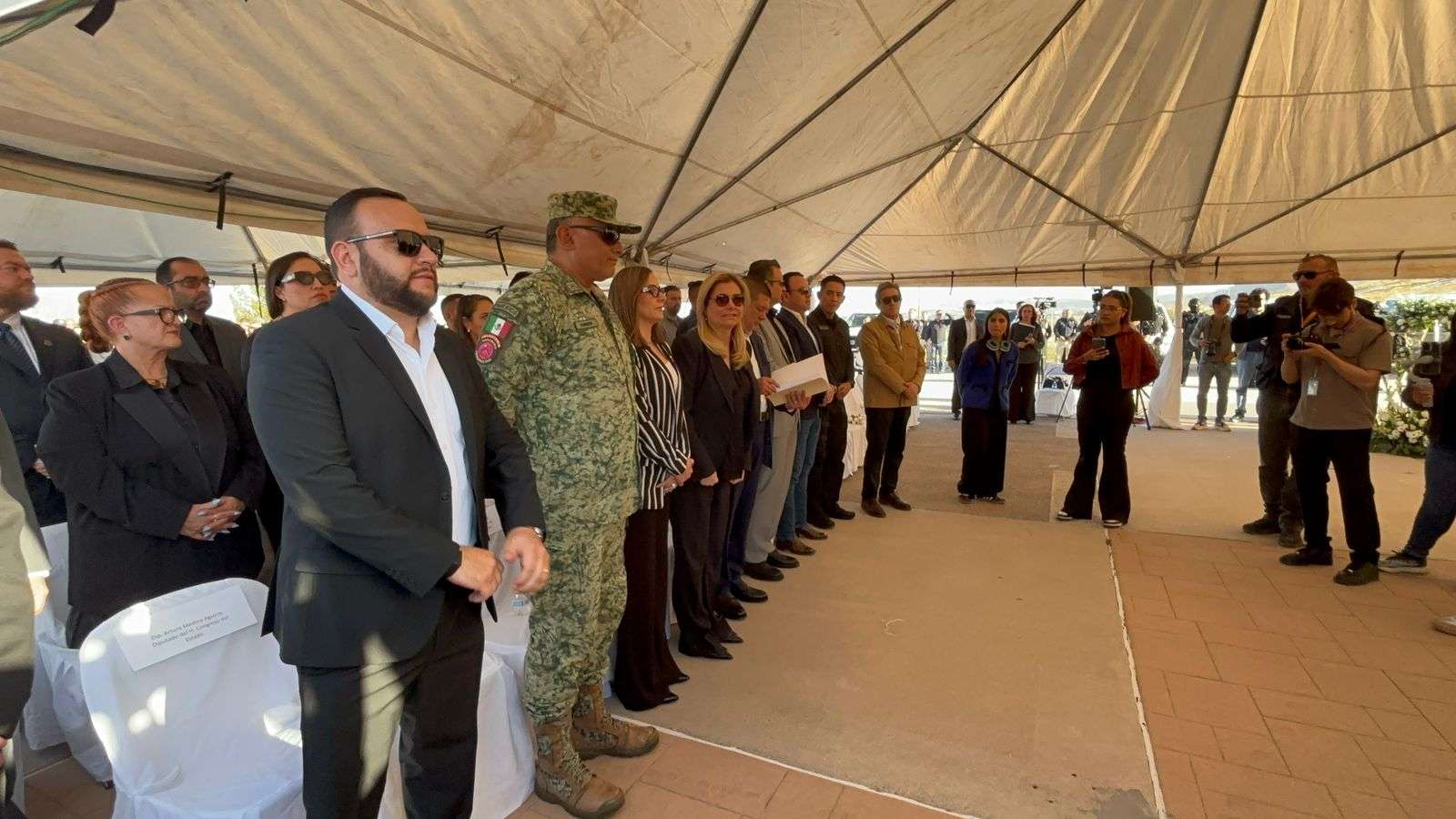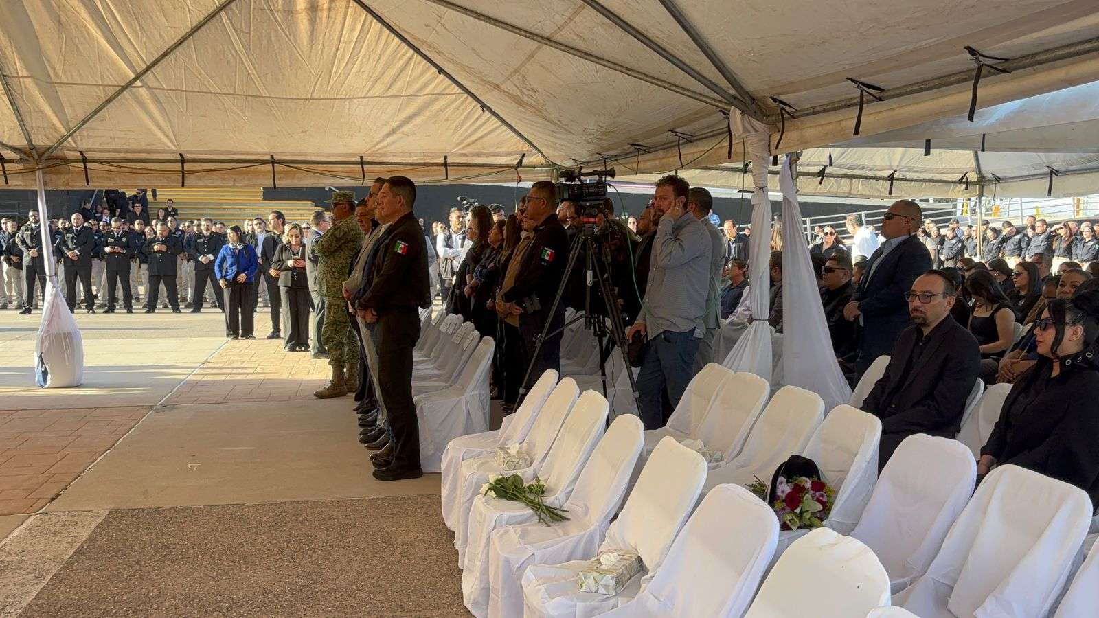Al evento asistieron destacadas figuras de las fuerzas federales, entre ellos el jefe de la Guardia Nacional, Gaudencio Ramos Jiménez, y el Coronel de Infantería Carlos Sánchez, comandante del 23 Batallón de Infantería de la Quinta Zona Militar, quienes montaron guardias de honor junto a los féretros de los oficiales caídos.