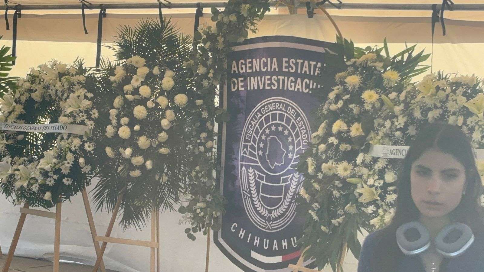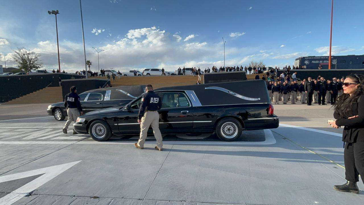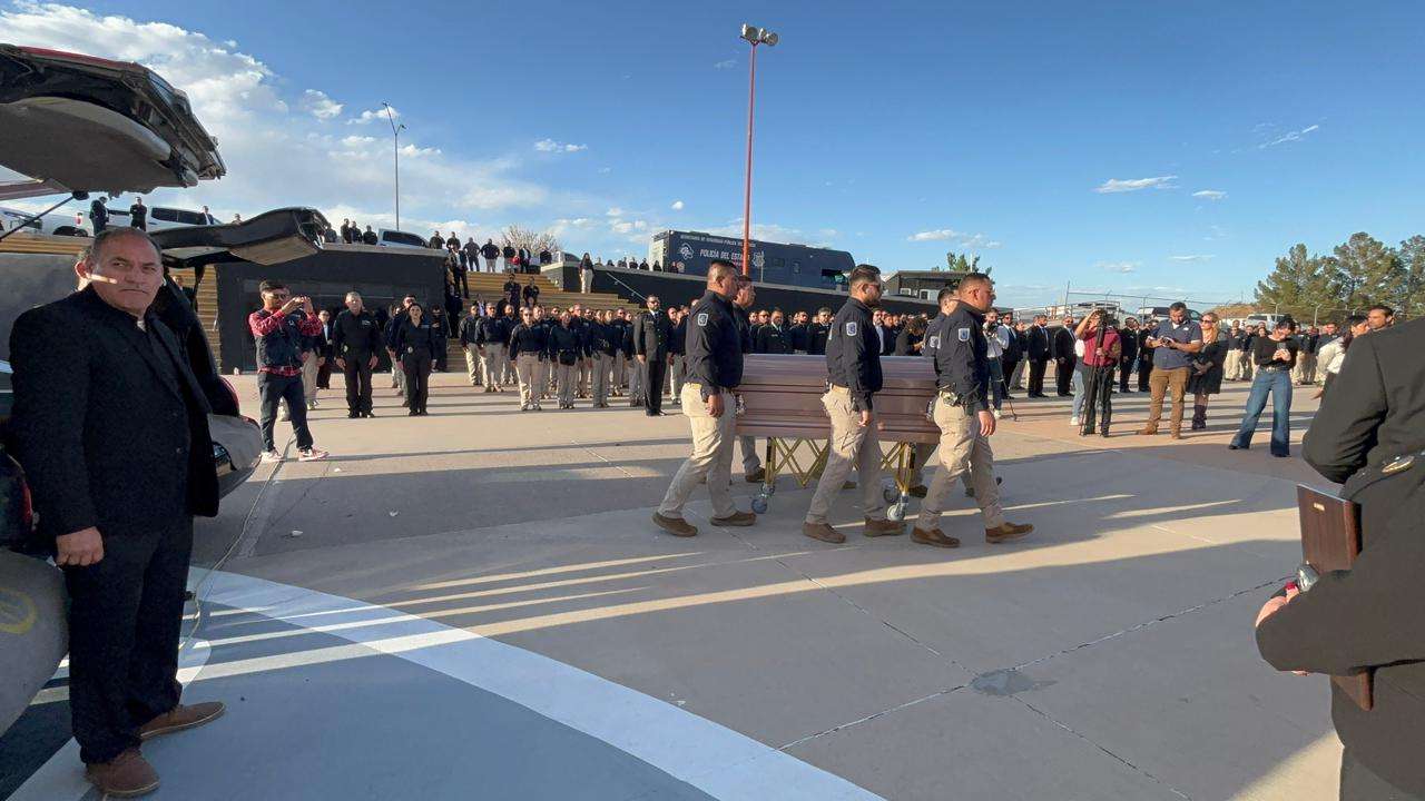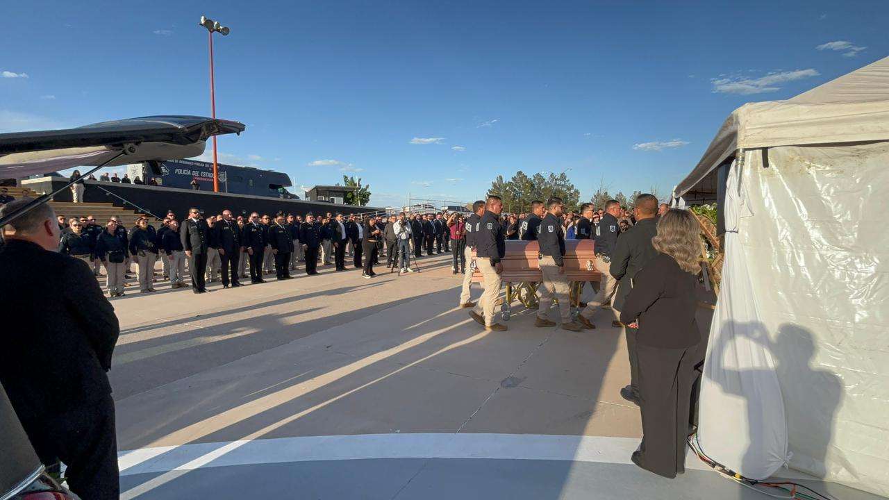 Chihuahua.- La tarde de este lunes, la gobernadora Maru Campos, acompañada por el fiscal general César Jáuregui y el alcalde capitalino Marco Antonio Bonilla Mendoza, encabezó la ceremonia de honras fúnebres en memoria de Pedro Román Oseguera Cervantes, director de la Agencia Estatal de Investigación (AEI), y del oficial Manuel Genaro Méndez Montes.