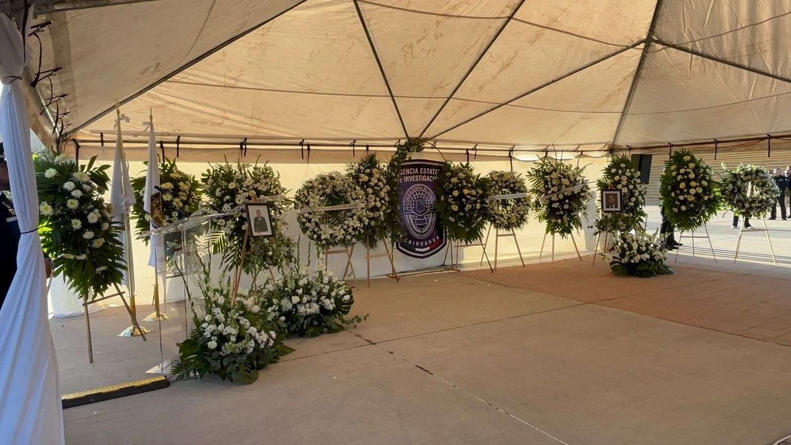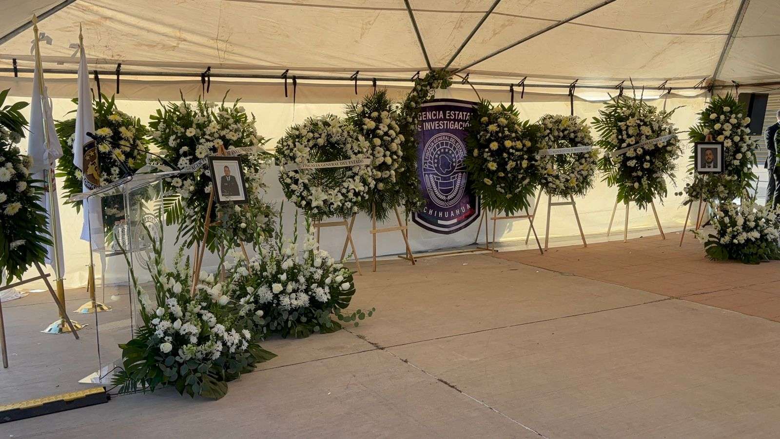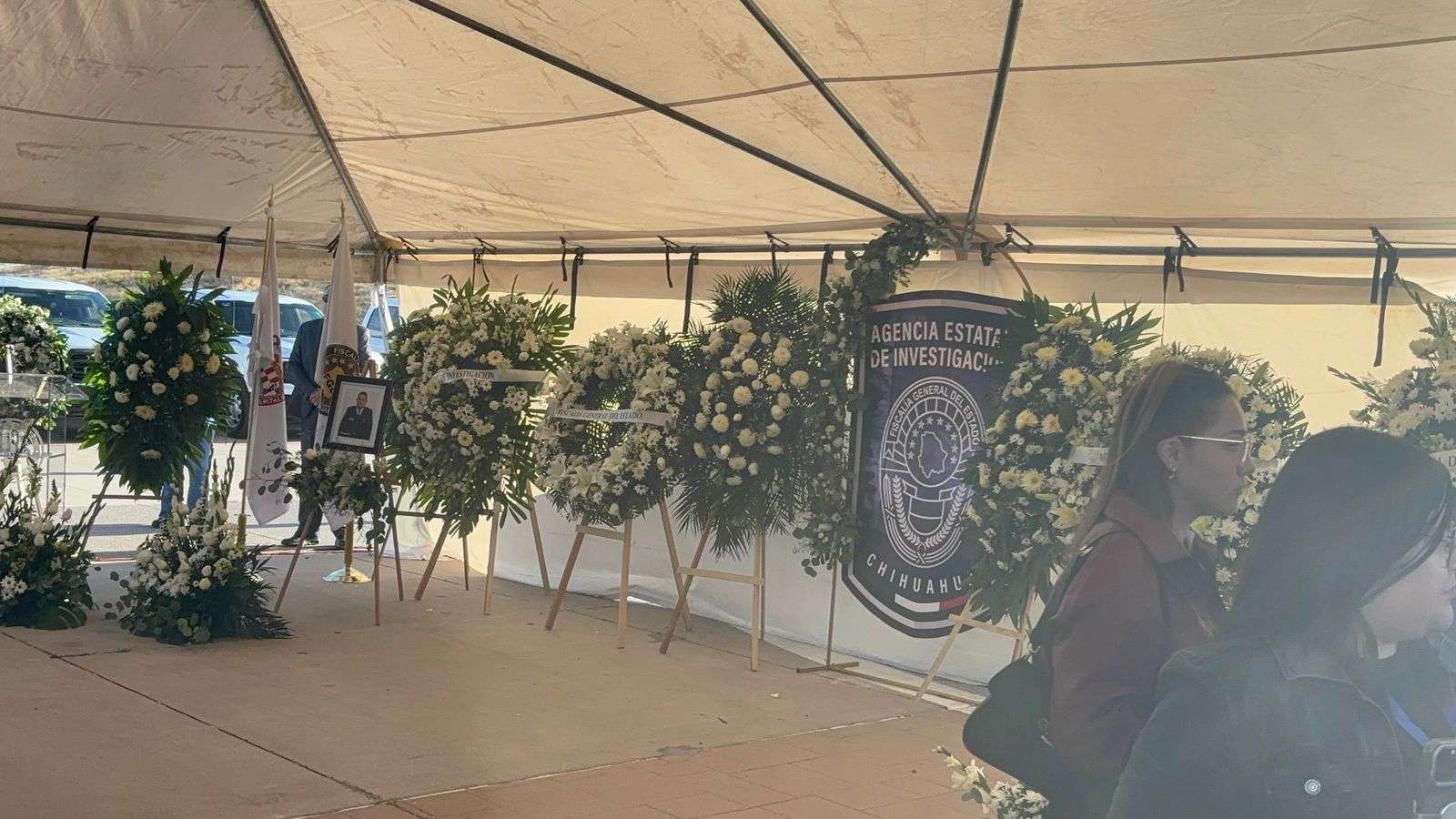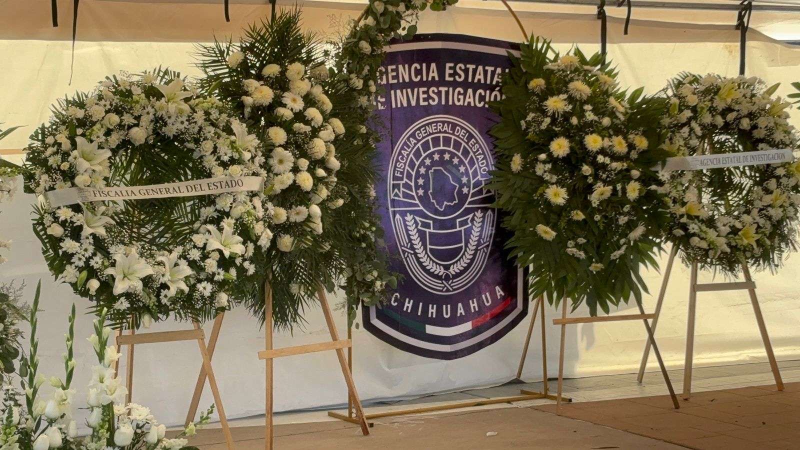 Chihuahua.- La tarde de este lunes, la gobernadora Maru Campos, acompañada por el fiscal general César Jáuregui y el alcalde capitalino Marco Antonio Bonilla Mendoza, encabezó la ceremonia de honras fúnebres en memoria de Pedro Román Oseguera Cervantes, director de la Agencia Estatal de Investigación (AEI), y del oficial Manuel Genaro Méndez Montes.