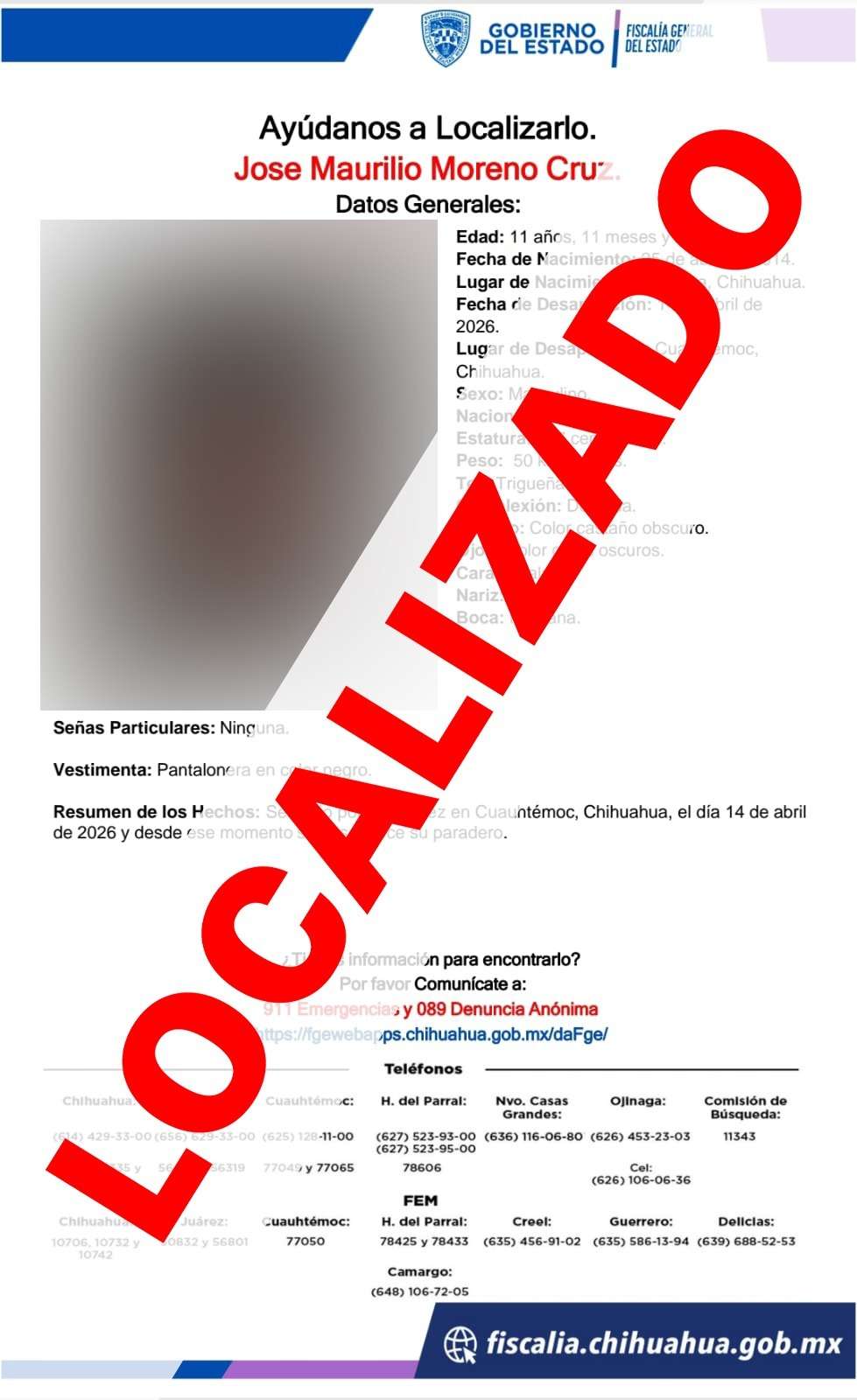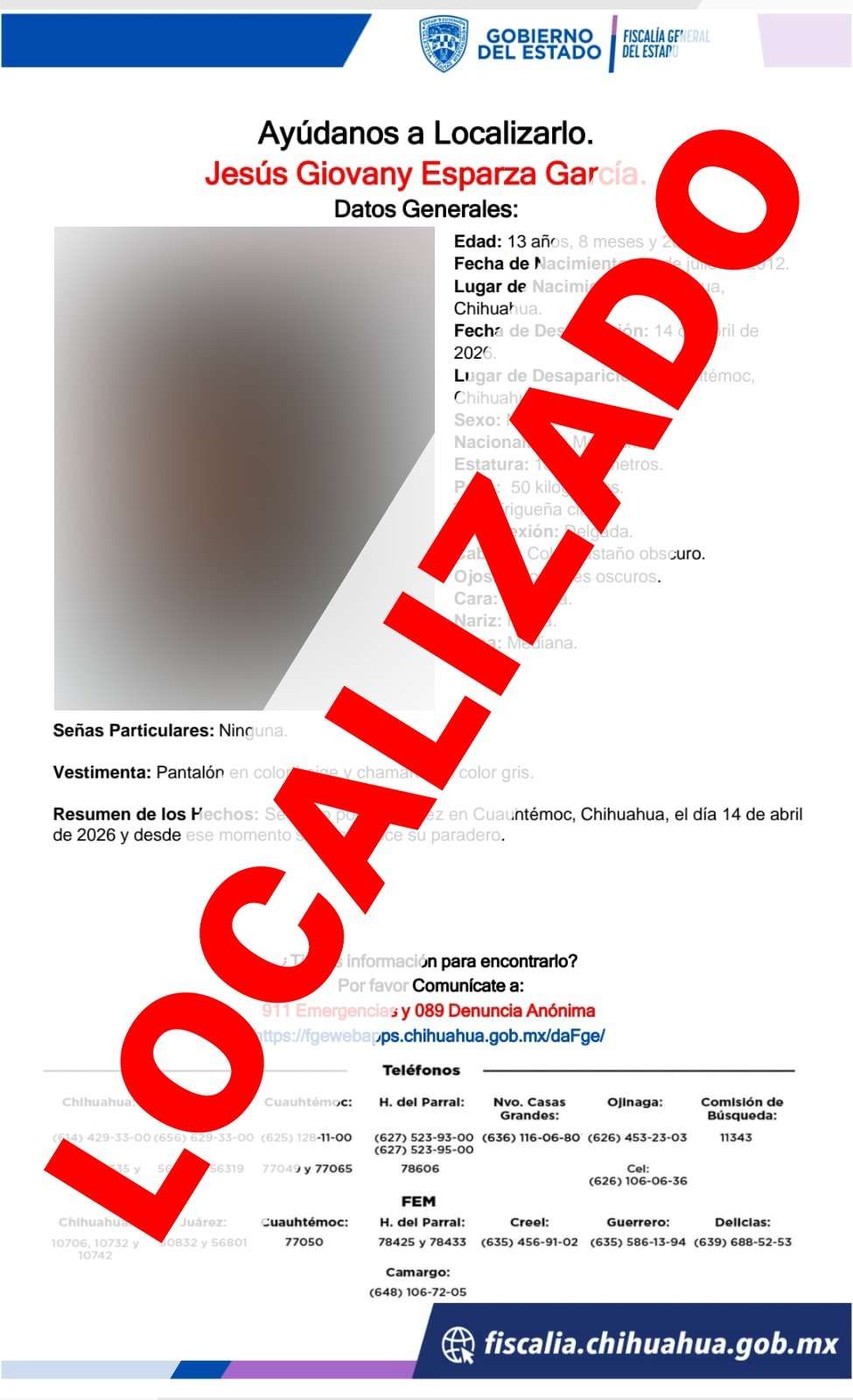 La Fiscalía General del Estado trabaja de manera permanente en la búsqueda y localización de personas desaparecidas, a fin de brindar tranquilidad y certeza a sus familias.