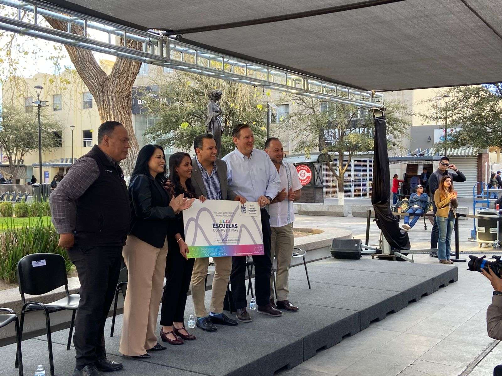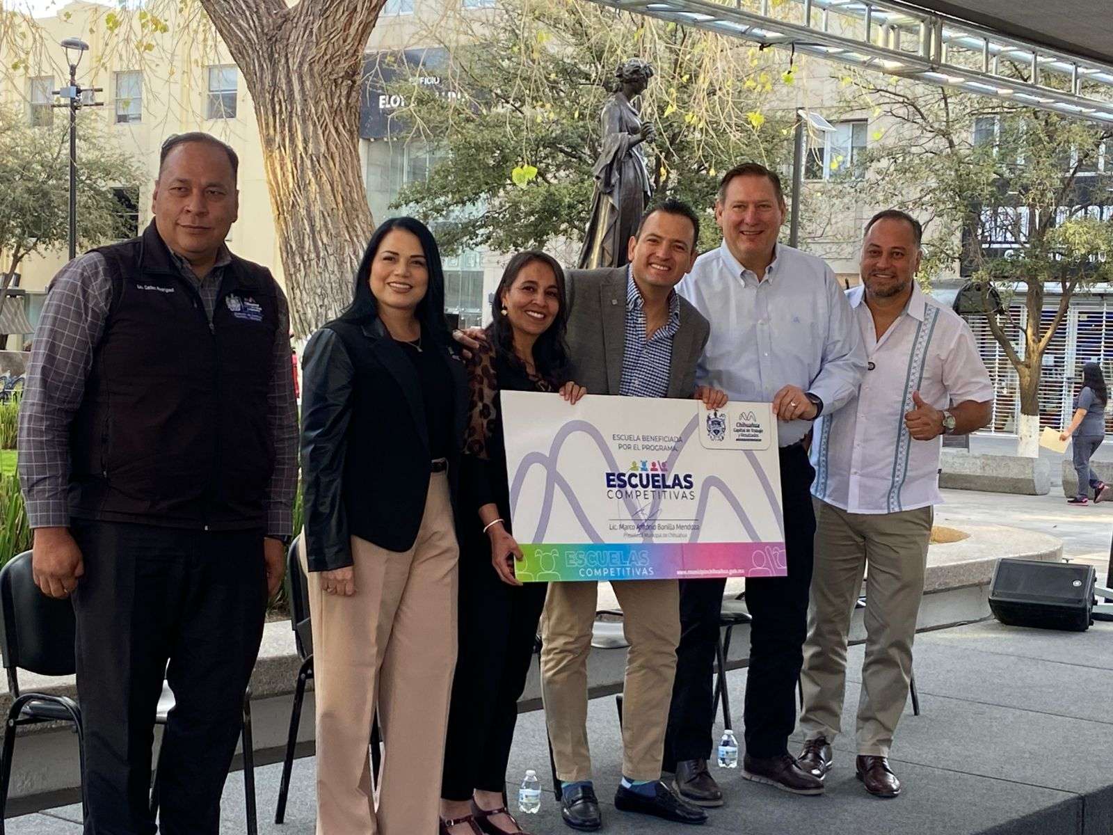 Chihuahua.- El alcalde Marco Antonio Bonilla Mendoza, encabezo la entrega de cheques del programa Escuelas Competitivas para la mejora de los centros escolares, que en esta ocasión se entregó de manera simbólica a la escuela secundaria 3020.