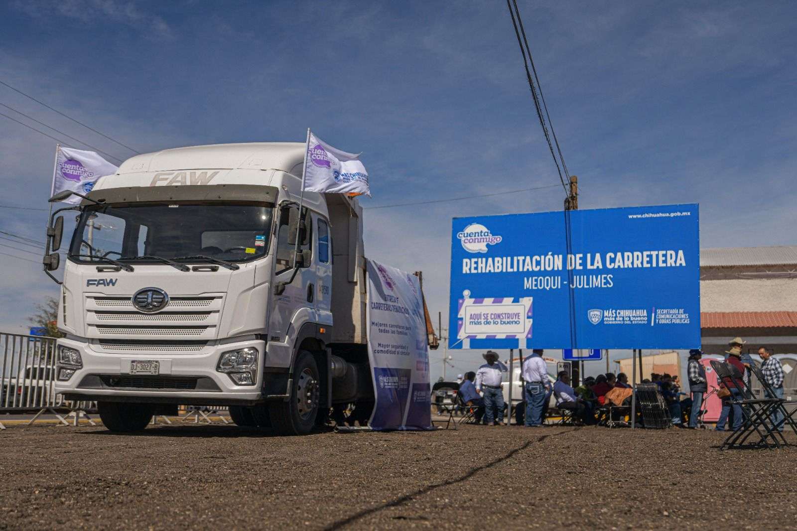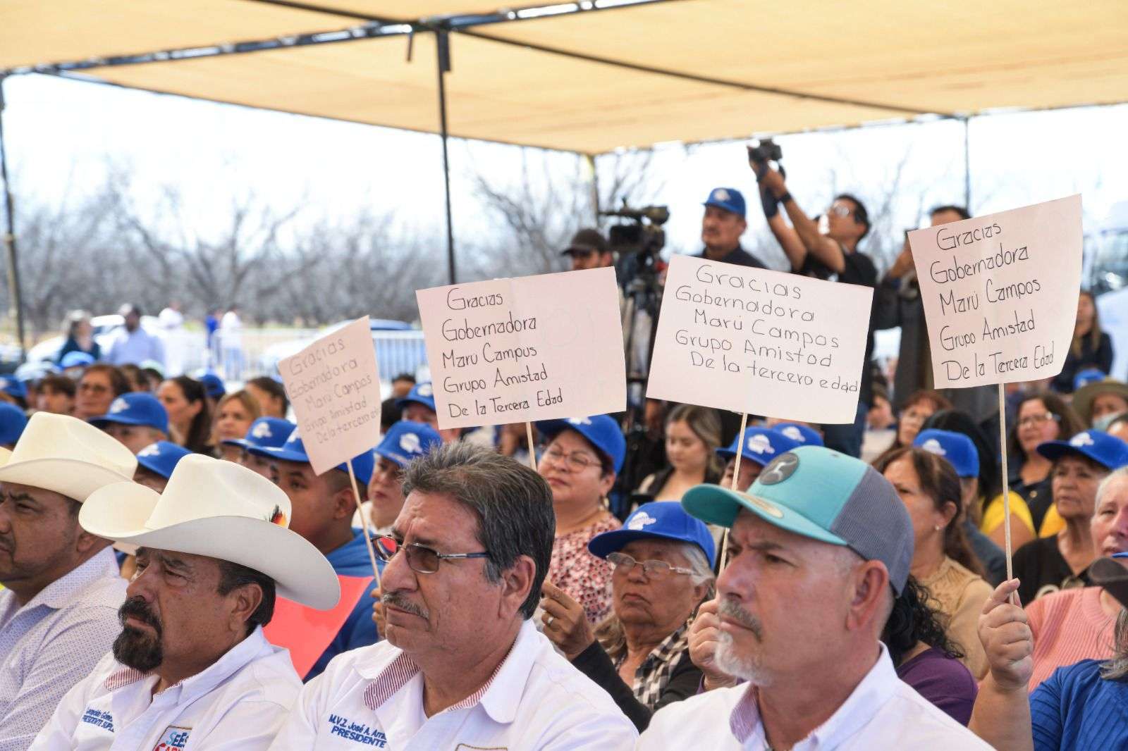 Meoqui.- La gobernadora Maru Campos entregó la obra de rehabilitación de la carretera Meoqui-Julimes que beneficiará a más de 50 mil personas, y que, en conjunto con la reconstrucción de la vía a Rosales y el acceso al seccional de Lázaro Cárdenas, representa una inversión superior a los 100 millones de pesos (mdp).