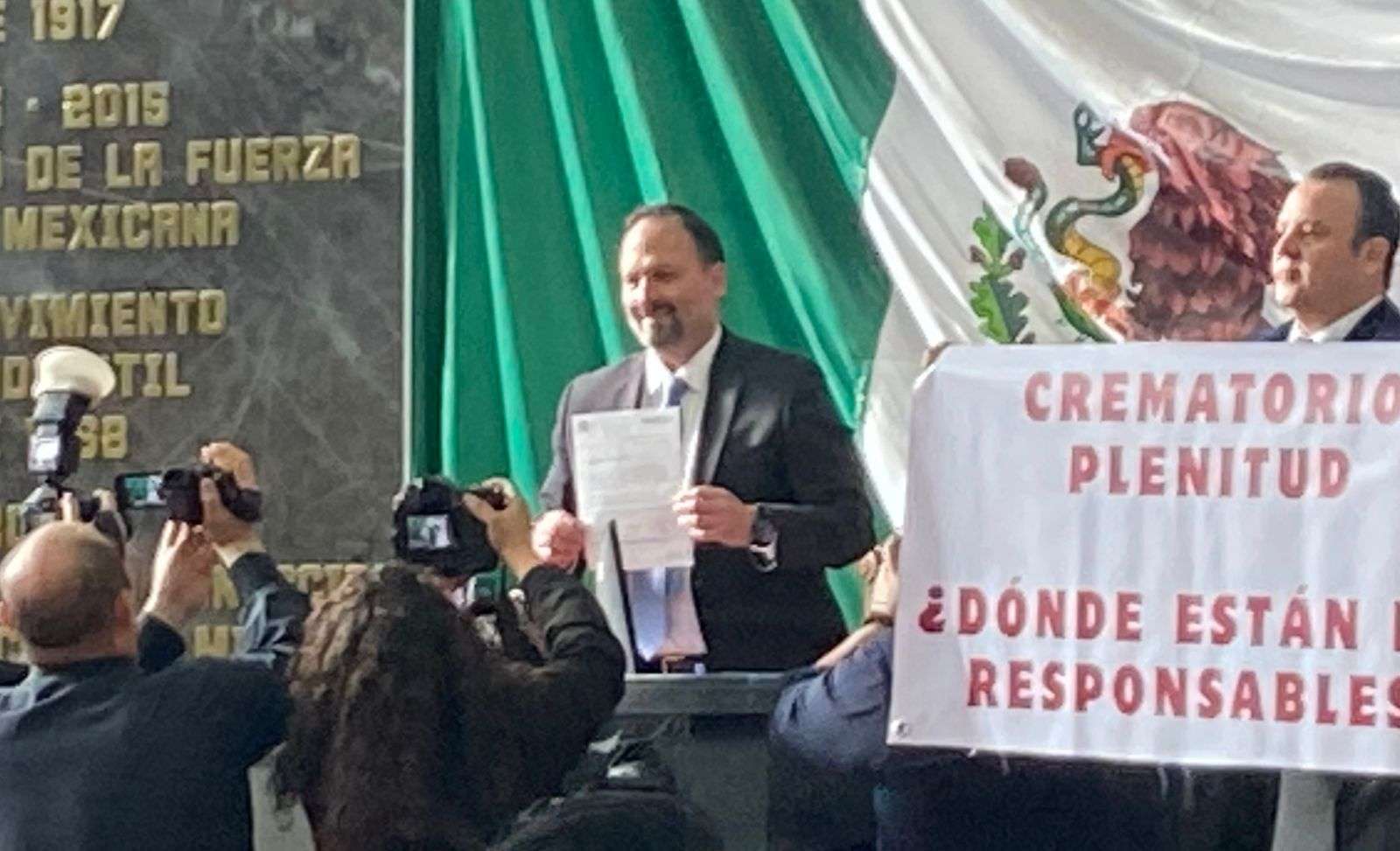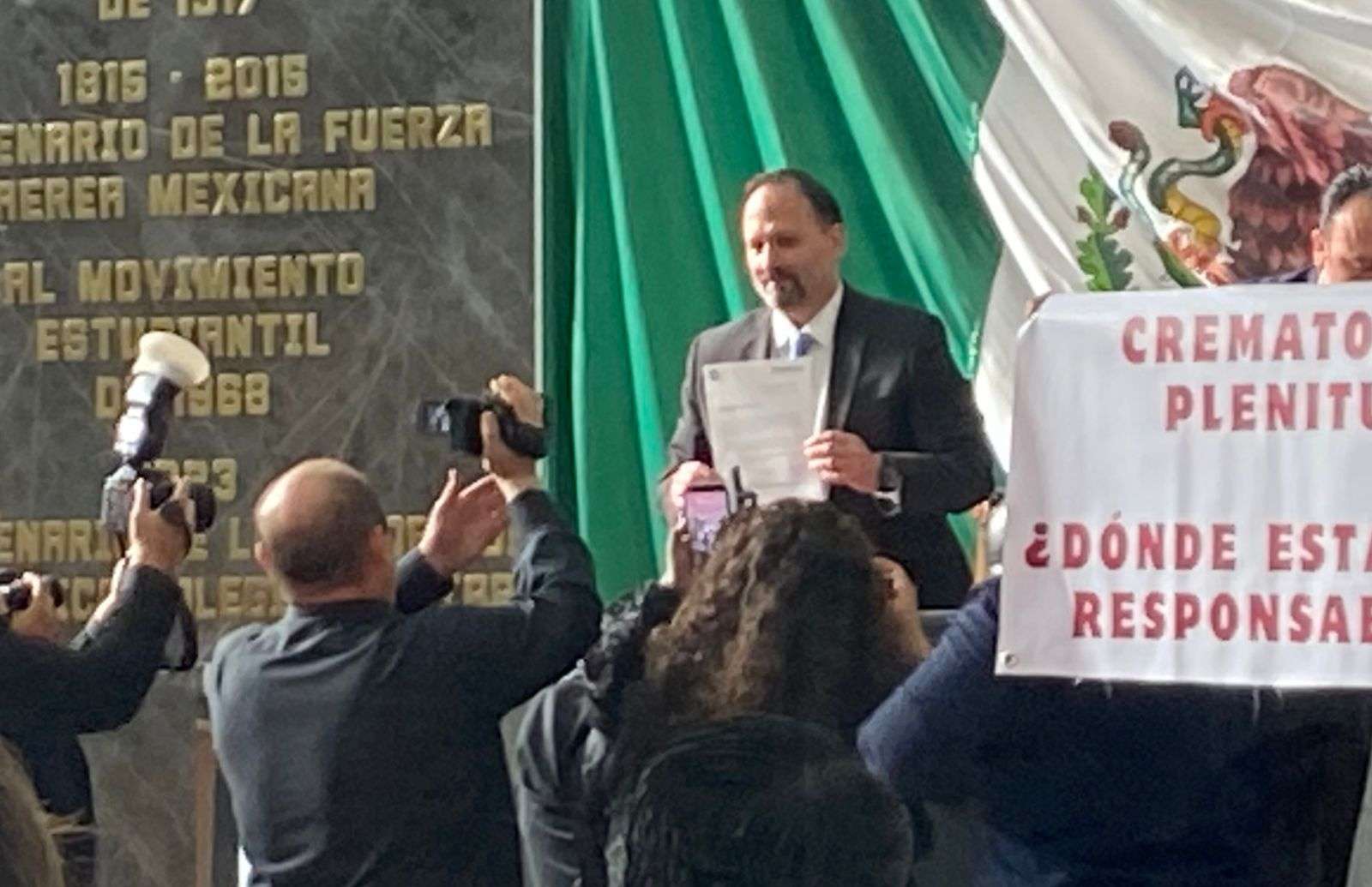 Durante el acto de entrega diputados del PAN como de Morena se manifestaron con pancartas, los de Morena exigiendo justicia para las familias del crematorio Plenitud y los del PAN, en apoyo a la Gobernadora Maru Campos.