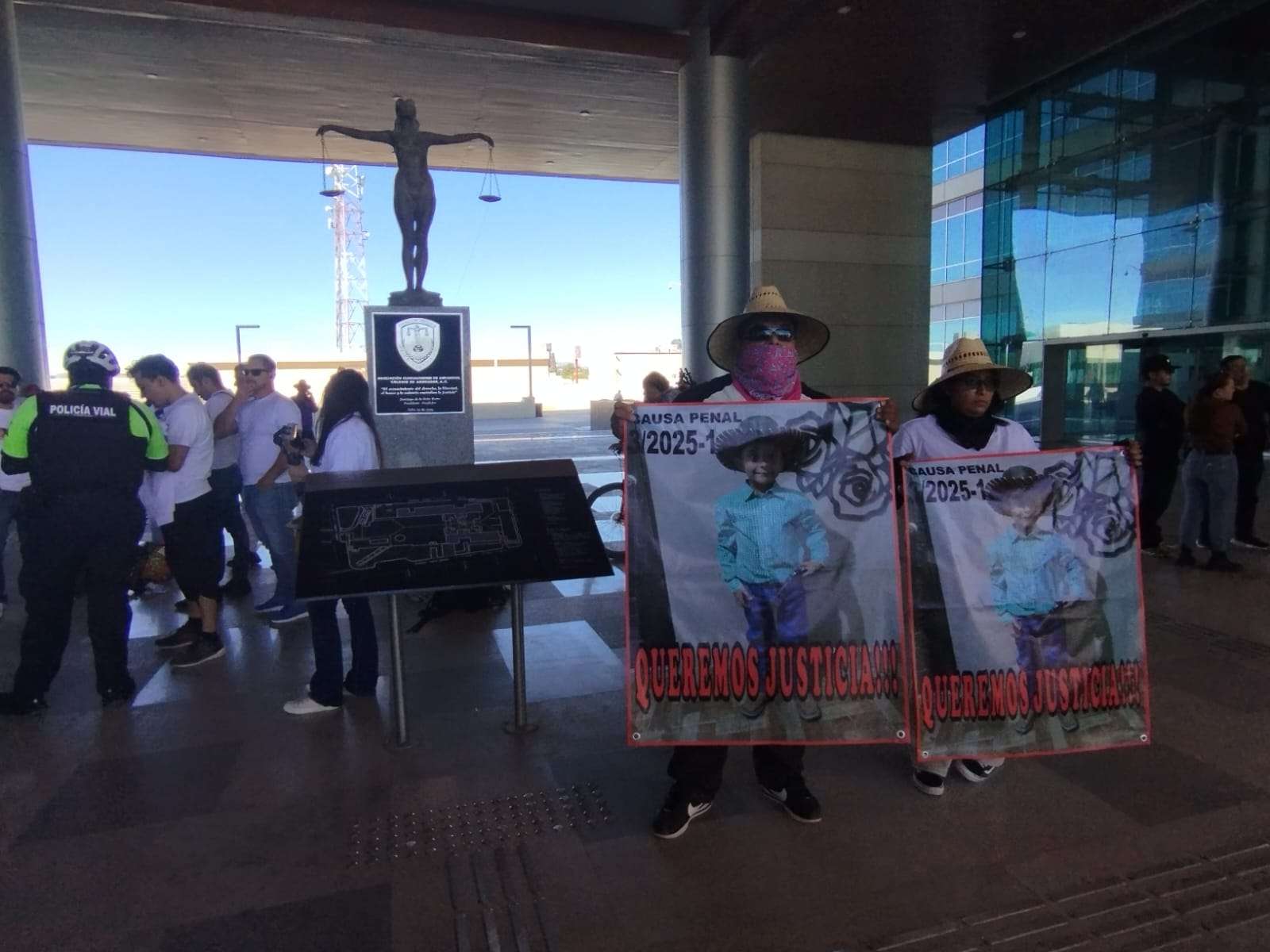 Chihuahua.- Lucero Parra Elizalde se manifestó en la entrada del Tribunal Superior de Justicia (TSJ) exigiendo justicia por presunta negligencia médica del personal médico del Hospital Palmore, donde su hijo de 7 años, Ricardo Ruvalcaba, perdió la vida tras una operación ambulatoria.