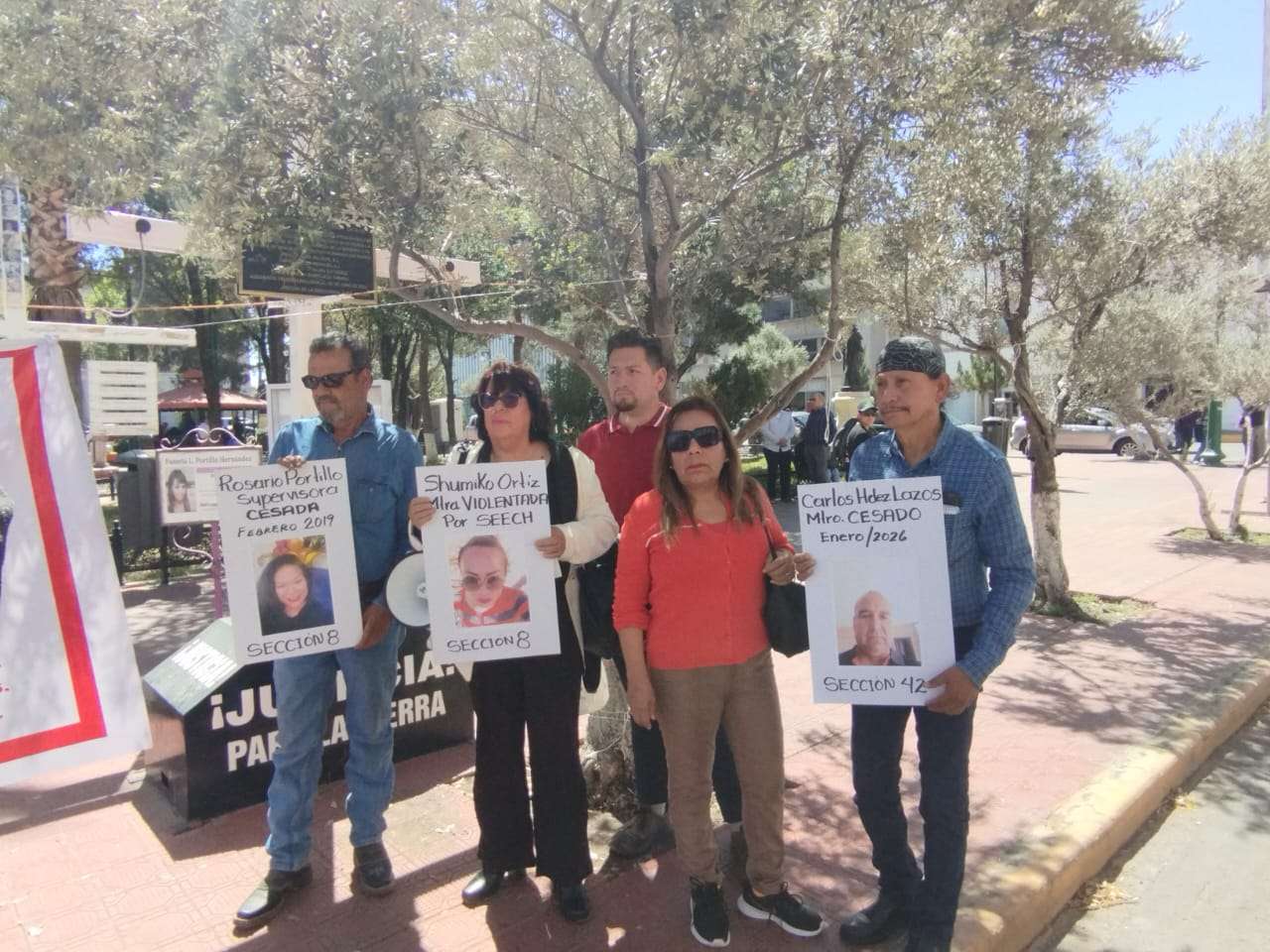 La posición de los docentes de las secciones número 8 y 42 del Sindicato Nacional de Trabajadores de la Educación (SNTE), el día de ayer siendo el primer día que se presentan por motivo de manifestación frente a Palacio de Gobierno por ceses y violencia laboral, la maestra Sumiko Ortiz López una de las manifestantes denunció por parte de sindicatos, tanto federales como estatales, omisiones y protocolos “de cuidado contra los maestros”