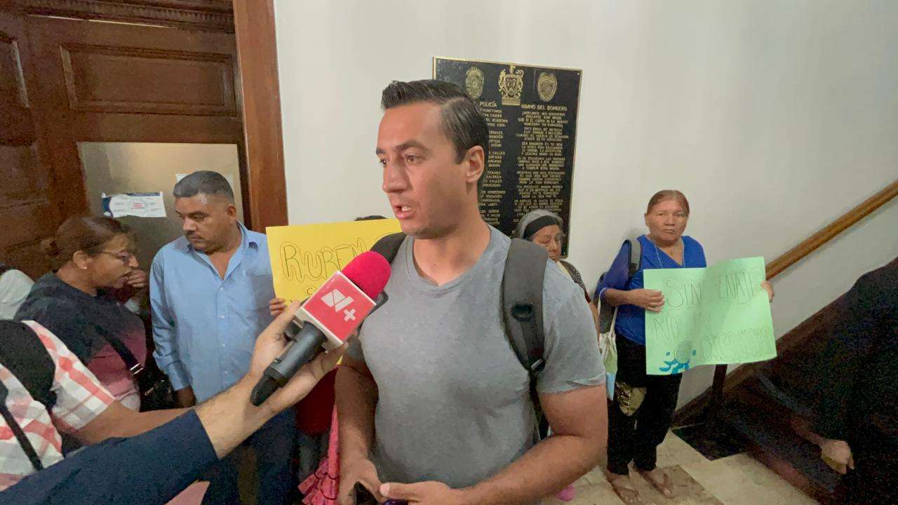 La movilización ocurrió apenas unos minutos antes de que diera inicio la sesión ordinaria del Cabildo, encabezada por el alcalde Marco Antonio Bonilla Mendoza.