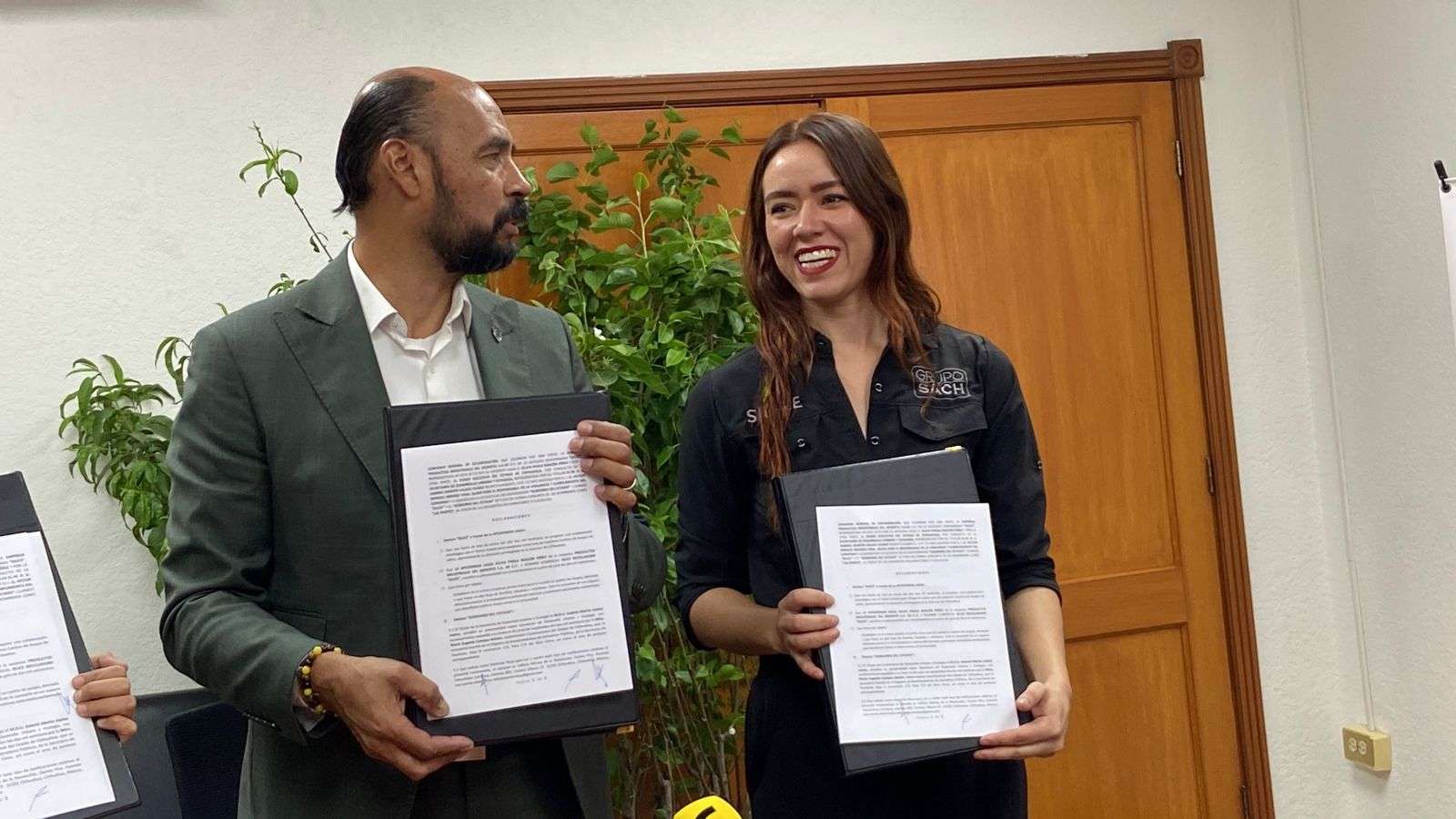 Chihuahua.- Se llevó a cabo una firma de convenio por parte de Gabriel Valdez titular de la Secretaría de Desarrollo Urbano y Ecología y la empresa de reciclaje Sílice, con el objetivo de establecer un programa permanente de reciclaje de vidrio.