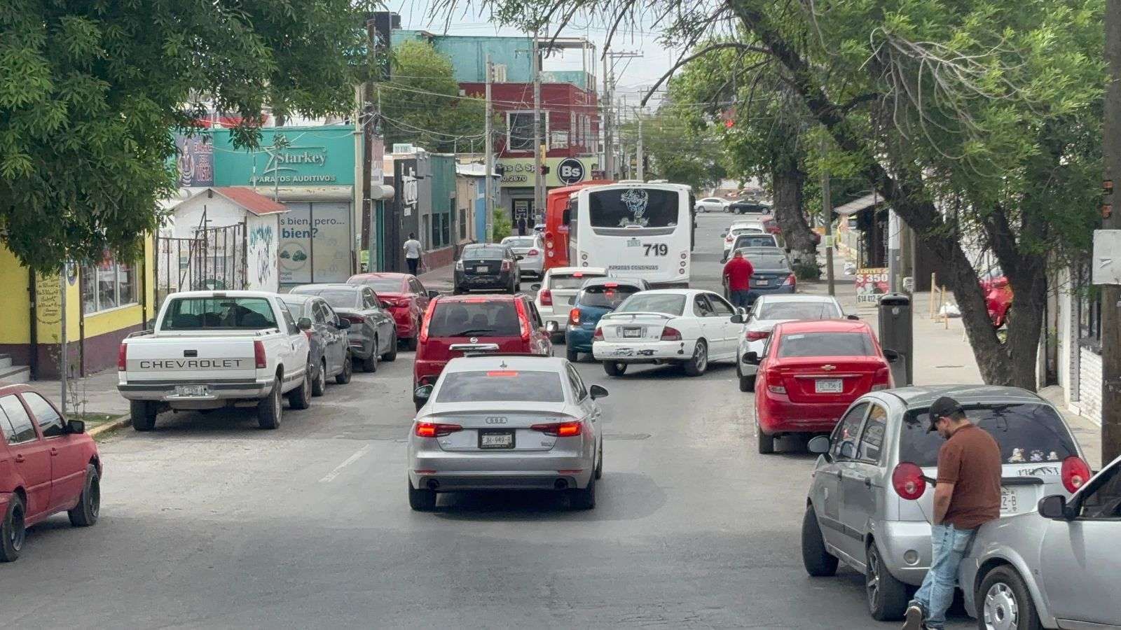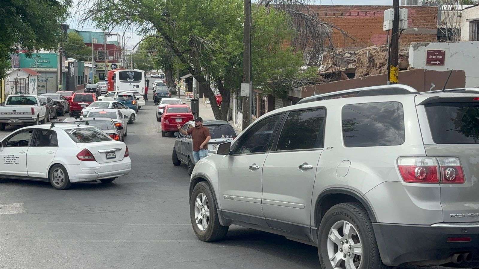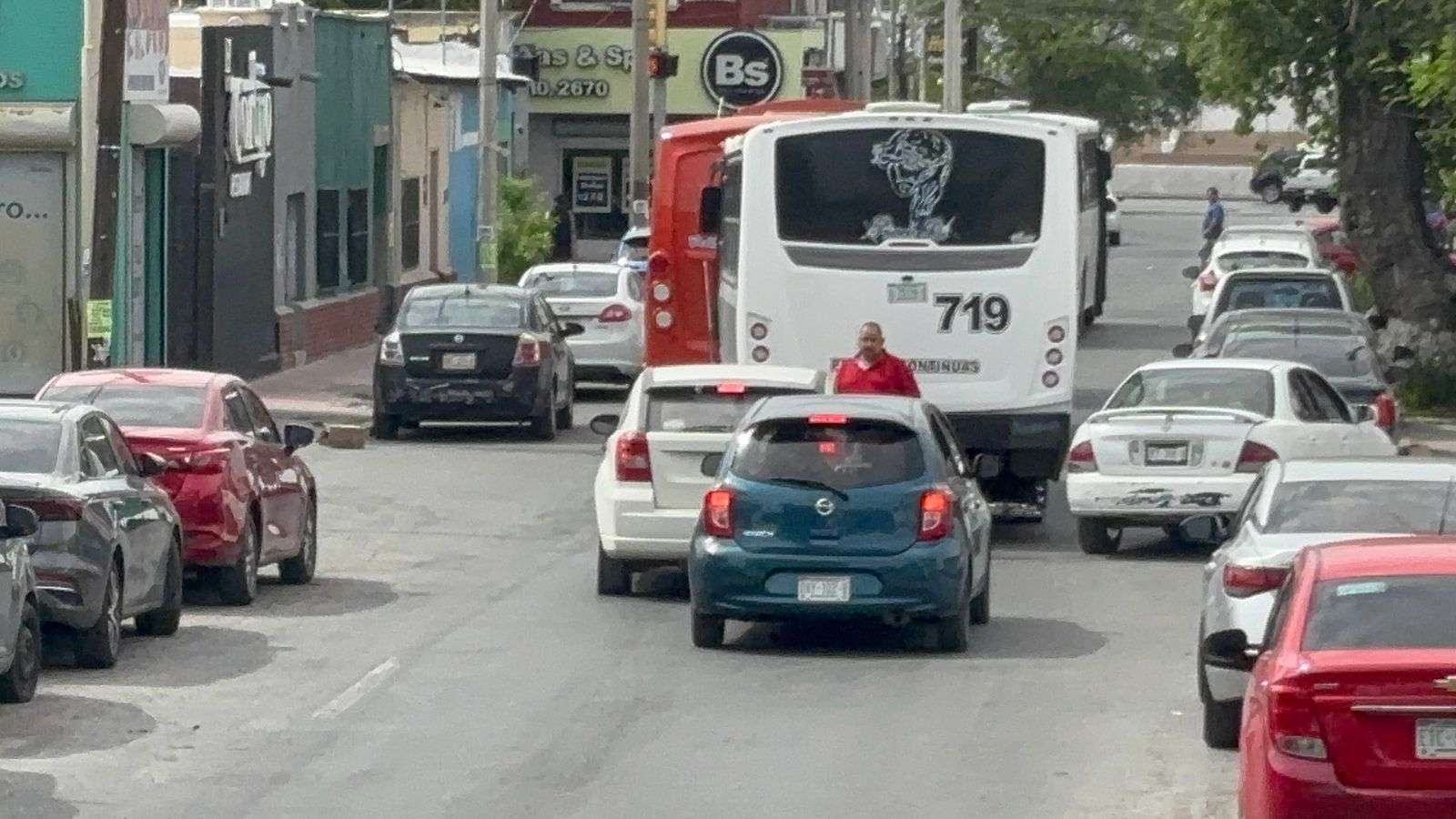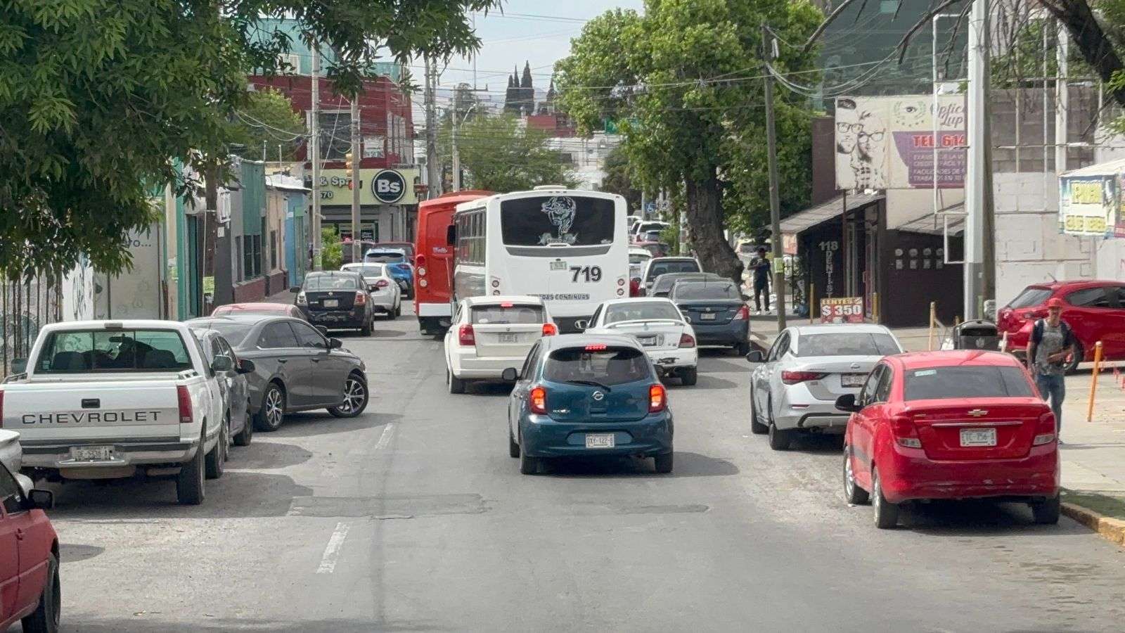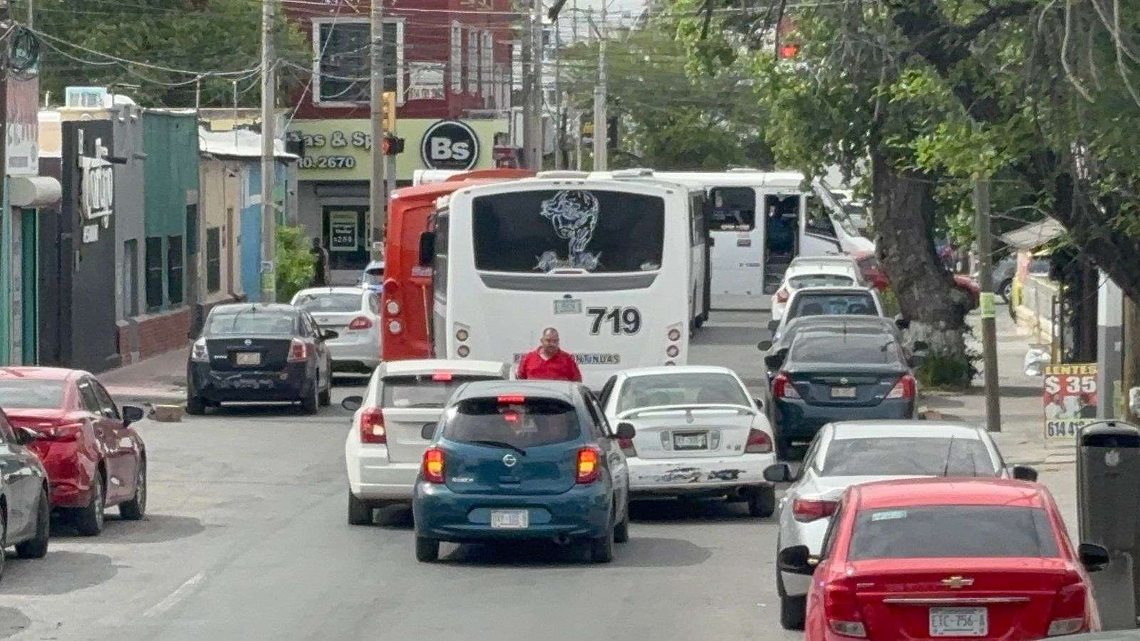 Chihuahua, Chih. — Un fuerte congestionamiento vial se registró la tarde de este miércoles en el Centro Histórico, luego de un choque múltiple en el que se vieron involucrados un camión de transporte urbano y dos vehículos particulares sobre la calle Neri Santos.