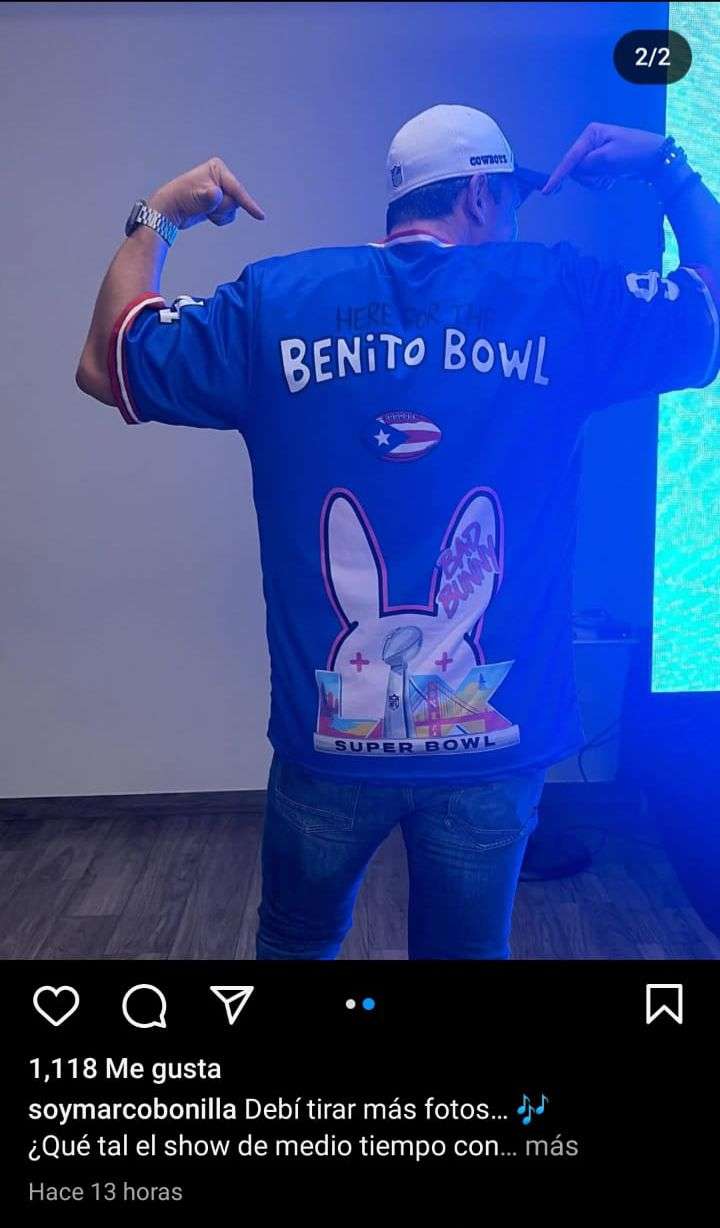 En su publicación, señaló que debió haber tomado más imágenes con el jersey especial, el cual hace alusión al espectáculo de medio tiempo del artista puertorriqueño; con ello buscó sumarse al ambiente festivo que genera uno de los eventos deportivos más importantes del año.