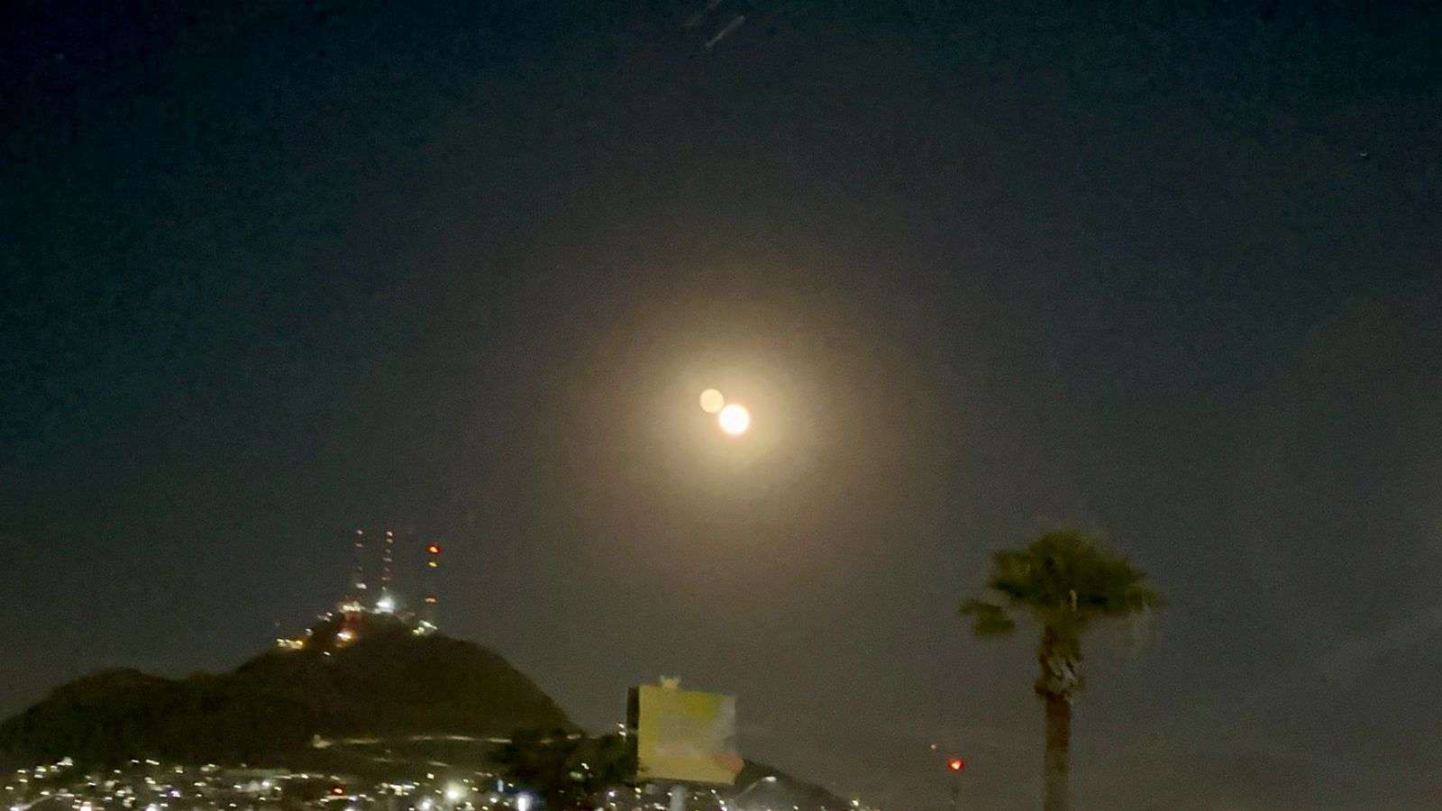 Sin duda, uno de los adornos que acompañan al Cerro El Coronel, con sus características tres antenas y a un lado la luna llena que atrajo a los amantes lunáticos.