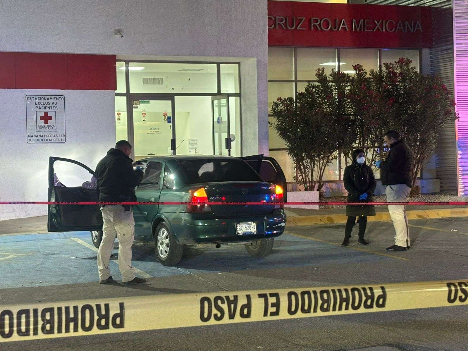 Al exterior de la institución médica quedó un vehículo Chevrolet Corsa color verde, en cuyo interior se localizó sin vida al masculino, mientras que la mujer falleció cuando recibía atención médica.