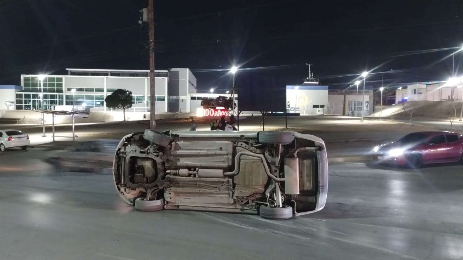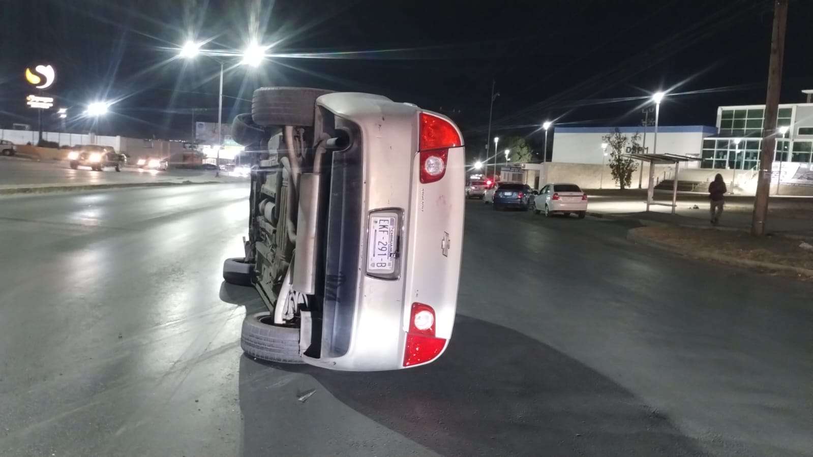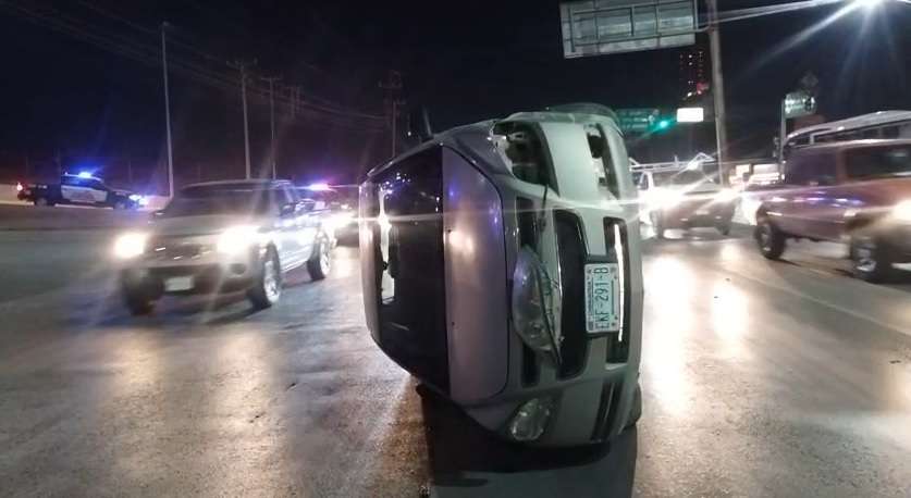 De acuerdo con el reporte, el automóvil se impactó contra la base de un poste de semáforo, lo que provocó que volcara y quedara recostado sobre su costado derecho.