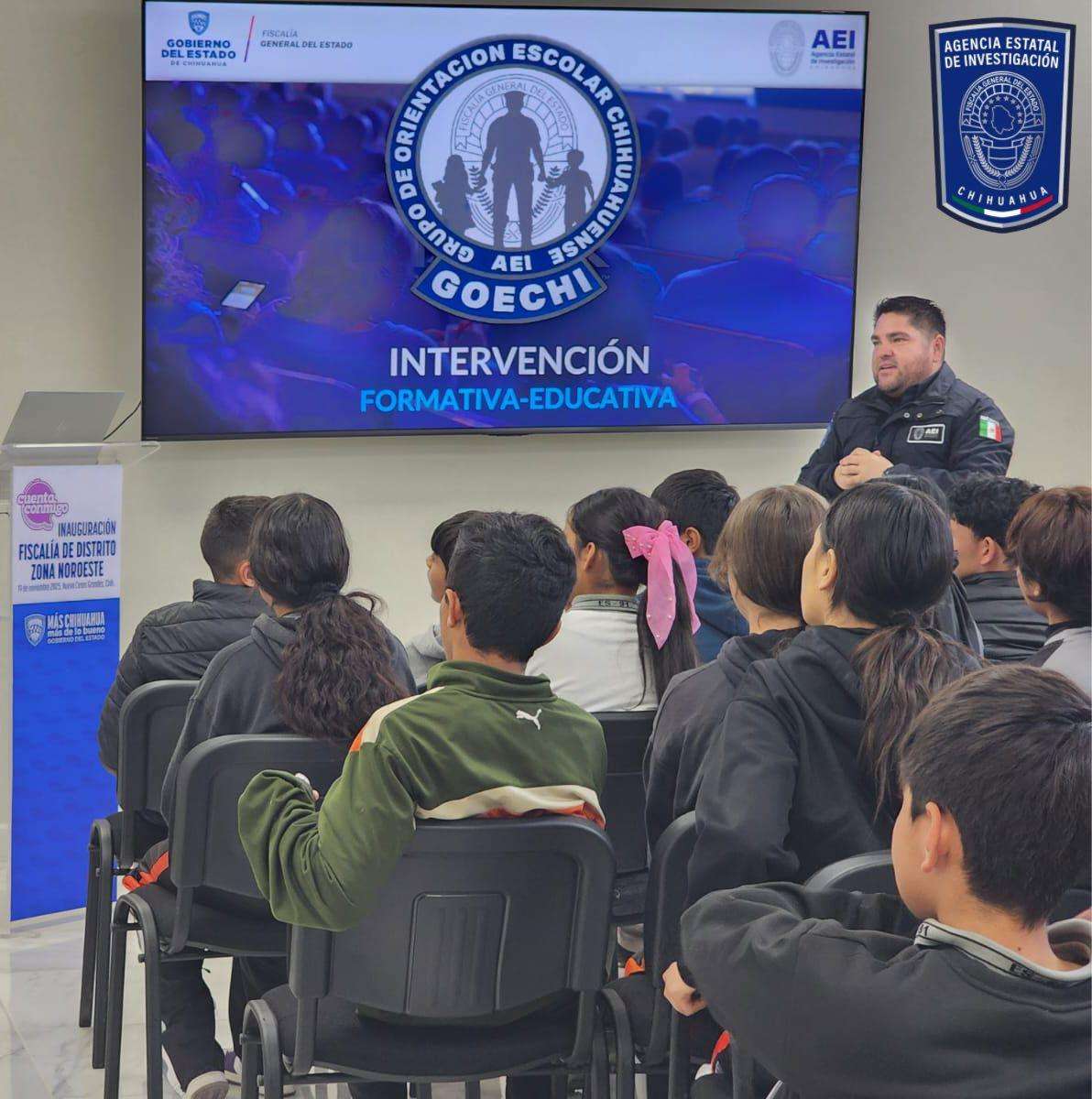 Nuevo Casas Grandes, Chih.- Elementos del Grupo de Orientación Escolar Chihuahuense (GOECHI) de la Agencia Estatal de Investigación (AEI), adscritos a la Fiscalía de Distrito Zona Noroeste, impartieron pláticas preventivas a estudiantes de la Secundaria Técnica No. 91, en el municipio de Nuevo Casas Grandes.