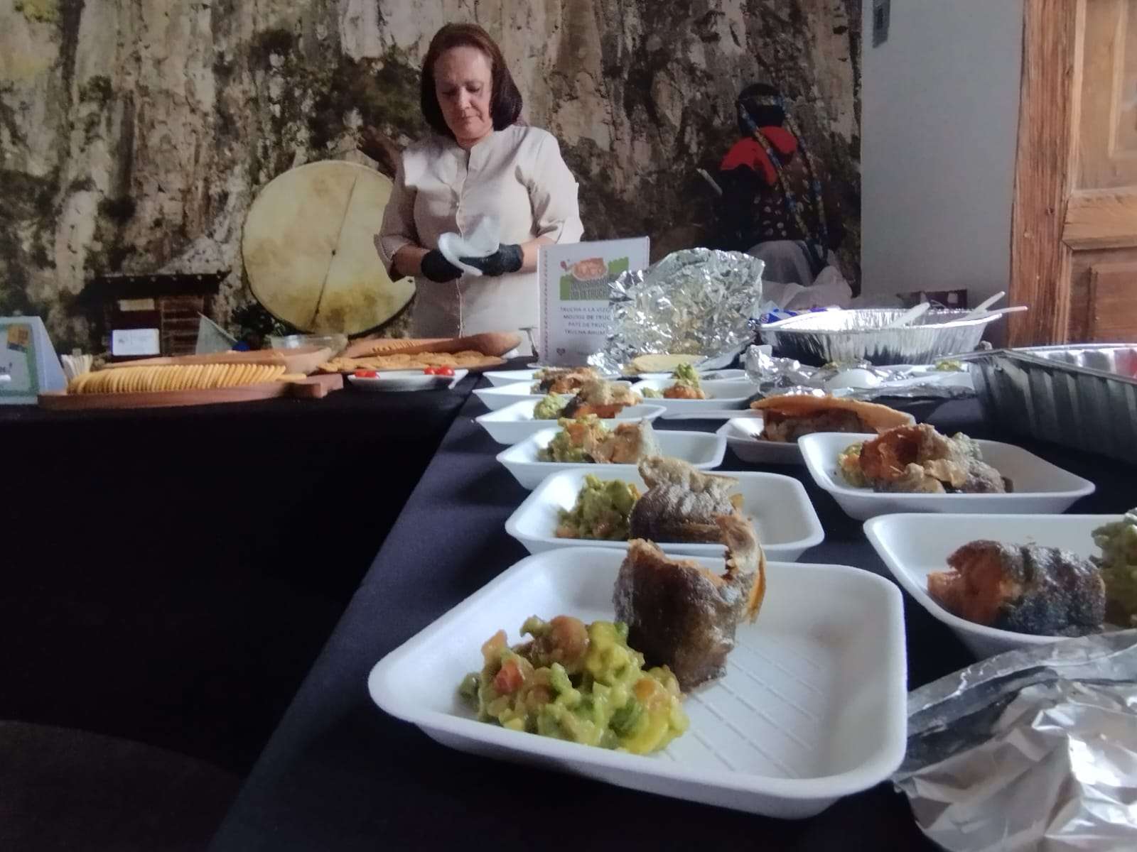 Para la muestra gastronómica, diversos chefs prepararon una variedad de platillos a base de trucha, entre los que destacaron hamburguesa de trucha, paté, sushi, ensaladas, ceviches y la tradicional trucha frita.