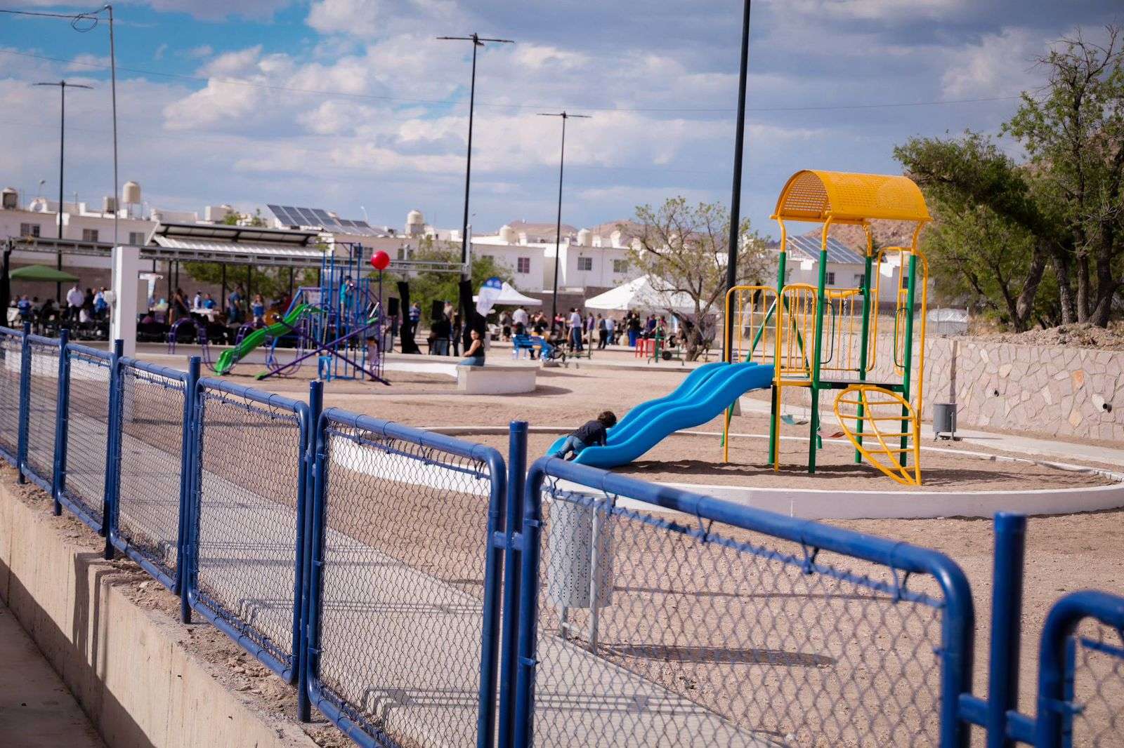 Chihuahua.- El alcalde Marco Bonilla, inauguró el Parque la Ribereña ubicado en la colonia Jardines de Sacramento, el cual fue construido gracias al Presupuesto Participativo y viene a brindar un espacio de encuentro, comodidad y de recreación en la zona para beneficio de cientos de familias.