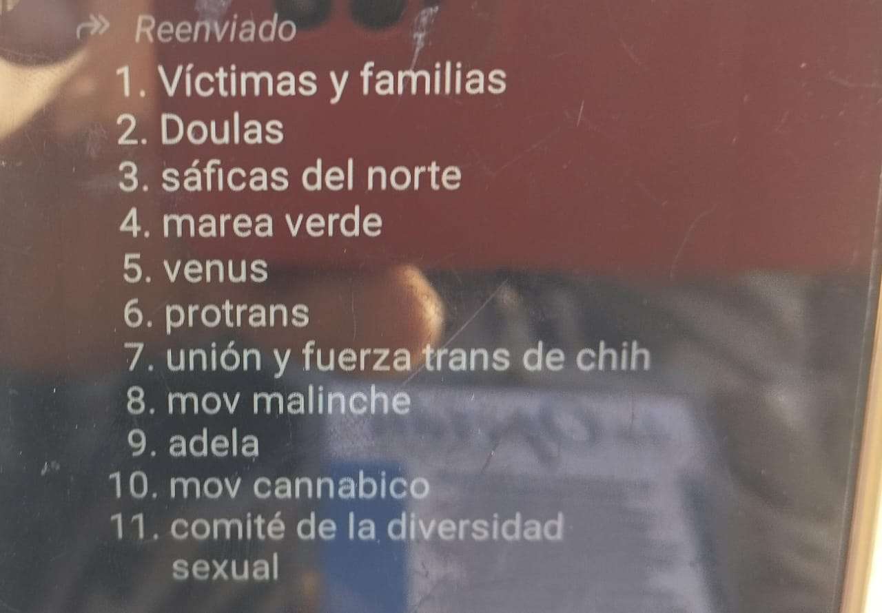 El tercer bloque estuvo conformado por Sáficas del Norte, seguidas por las agrupaciones Marea Verde y Venus. Por su parte, el sexto bloque se dedicó a visibilizar la violencia por transfobia, con la participación activa de las colectivas Unión y Fuerza Trans de Chihuahua.