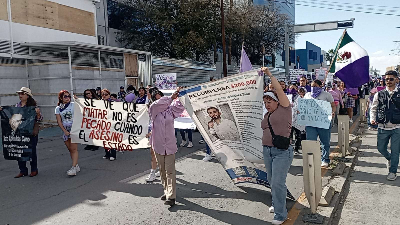 Durante el paso por el Monumento a la División del Norte se escucharon consignas como “Fuimos todas. Estas morras sí me representan” y “Ni una más, ni una más. Ni una asesinada más”, mientras algunas manifestantes realizaron intervenciones en el monumento.