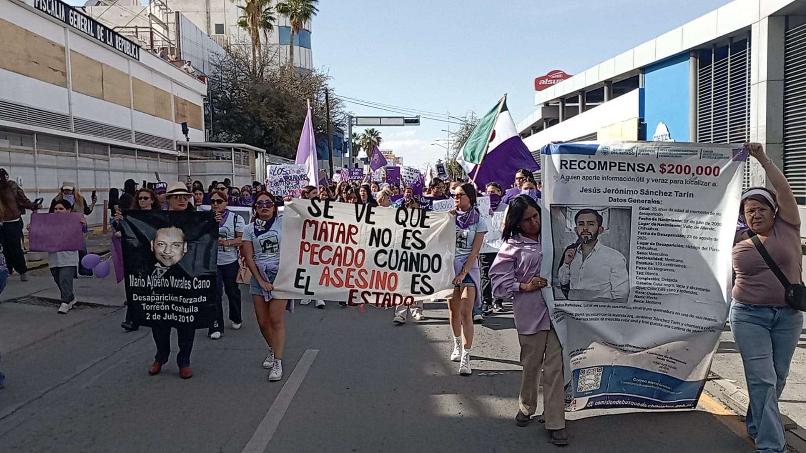 Chihuahua.- La tarde de este domingo comenzó la marcha con motivo del Día Internacional de la Mujer, en la que participaron aproximadamente 2 mil 500 mujeres.