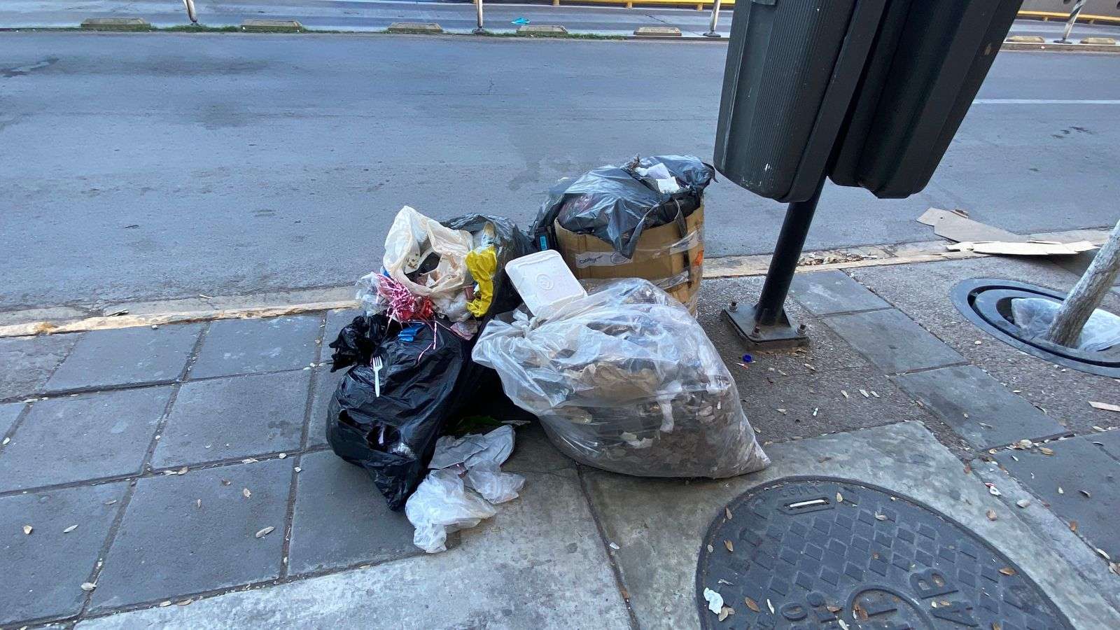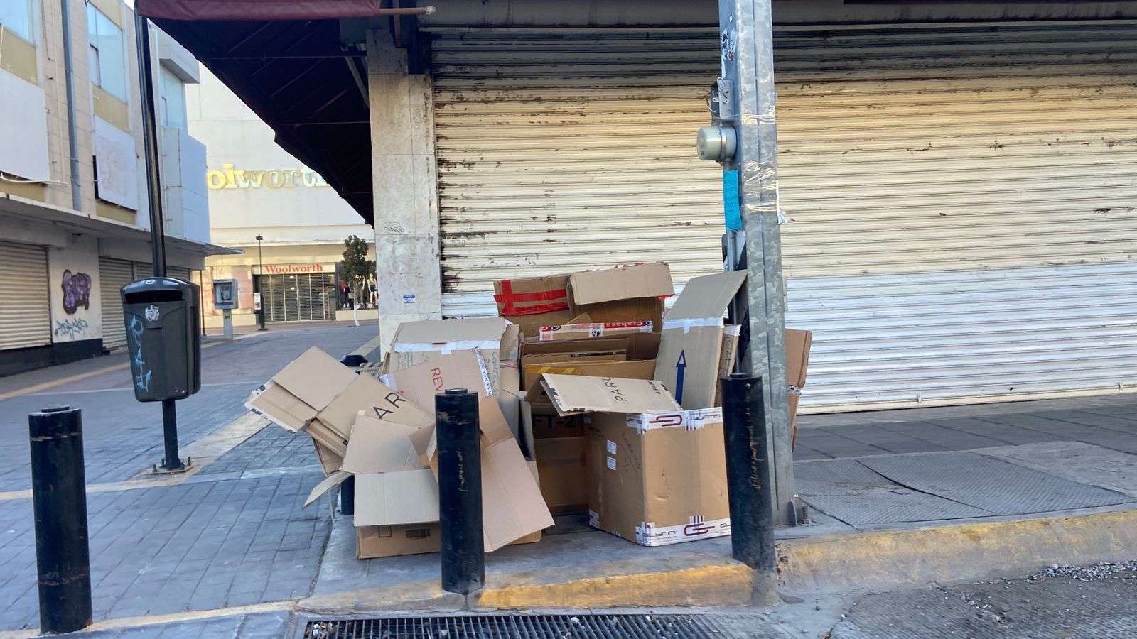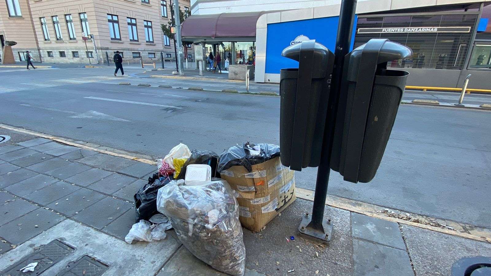 Chihuahua.– Las calles del primer cuadro de la ciudad amanecieron con una considerable acumulación de basura en las esquinas, lo que generó una fuerte contaminación visual.
