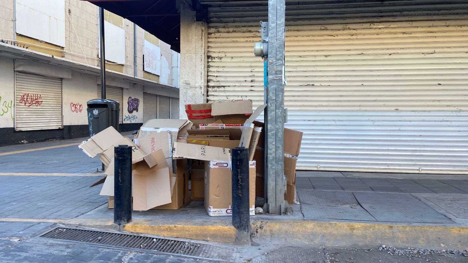 Los residuos se observaron principalmente en la avenida Juárez y casi Neri Santos. En la avenida Juárez, junto al Oxxo, se trató de varias bolsas de basura y cajas de cartón con desechos.