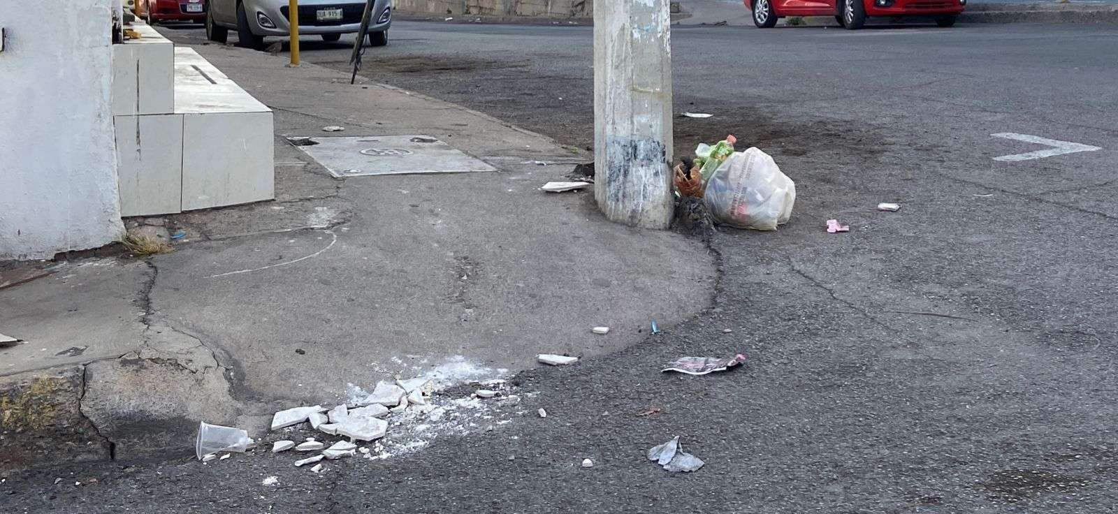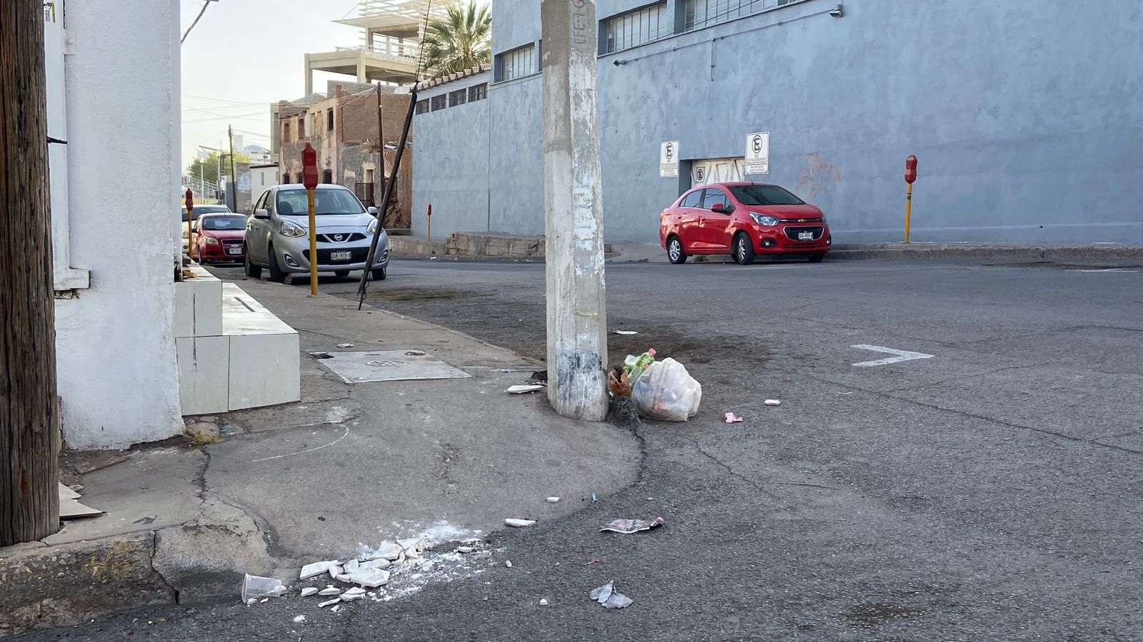 Chihuahua.– Las calles del primer cuadro de la ciudad amanecieron llenas de basura, generando una fuerte contaminación visual que causó asombro entre los peatones que diariamente transitan por la zona.