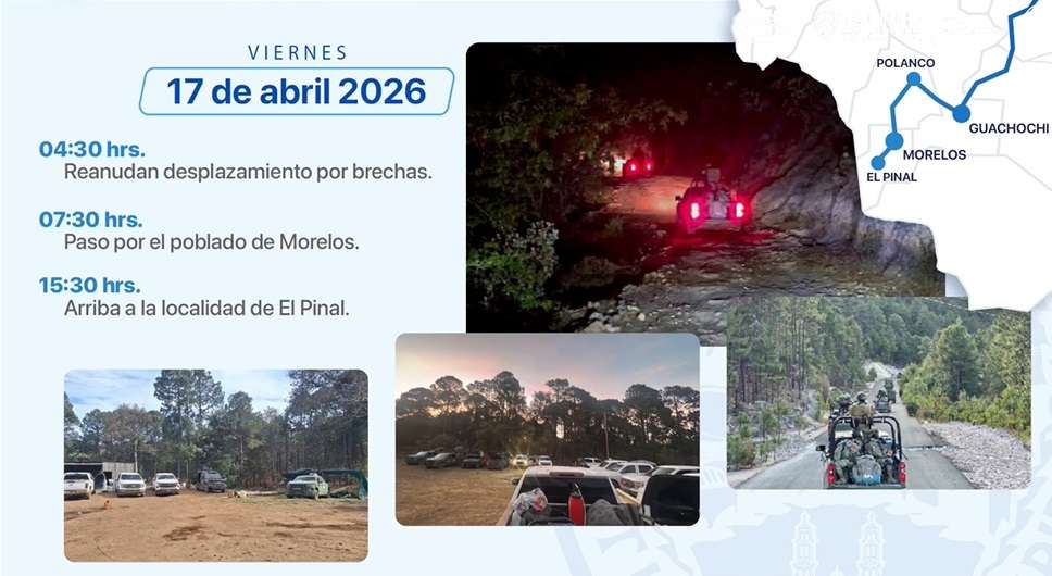 La reconstrucción de los hechos establece que el convoy, integrado por 40 elementos de la AEI, partió de la ciudad de Chihuahua el jueves 16 de abril. Tras una reunión con mandos militares en Guachochi —en la que no participaron los civiles extranjeros—, las fuerzas estatales y federales arribaron a la localidad de "El Pinal" el viernes 17 de abril.
