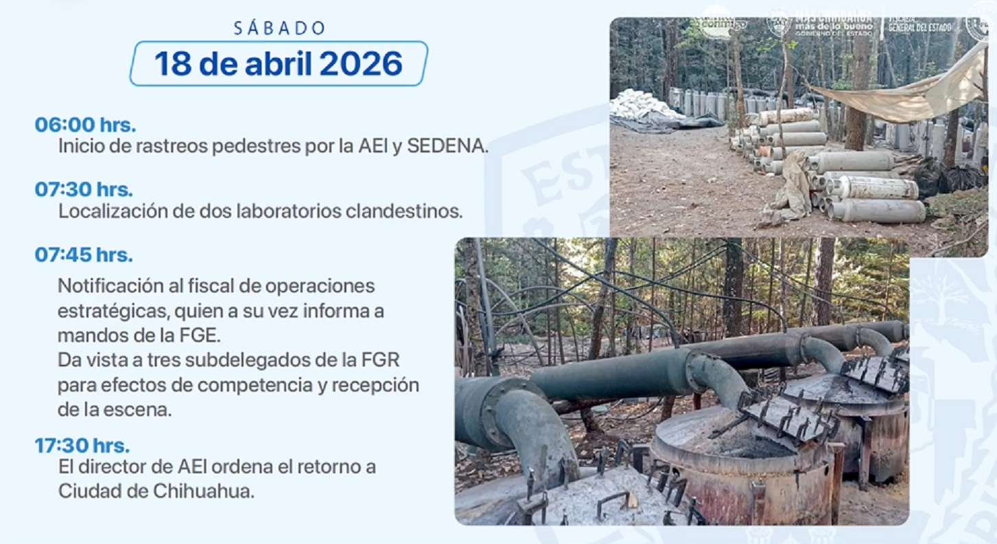 La mañana del sábado 18 de abril, se localizó y aseguró uno de los laboratorios de metanfetaminas más grandes del país. Tras notificar a la Fiscalía General de la República (FGR), el convoy inició el retorno.