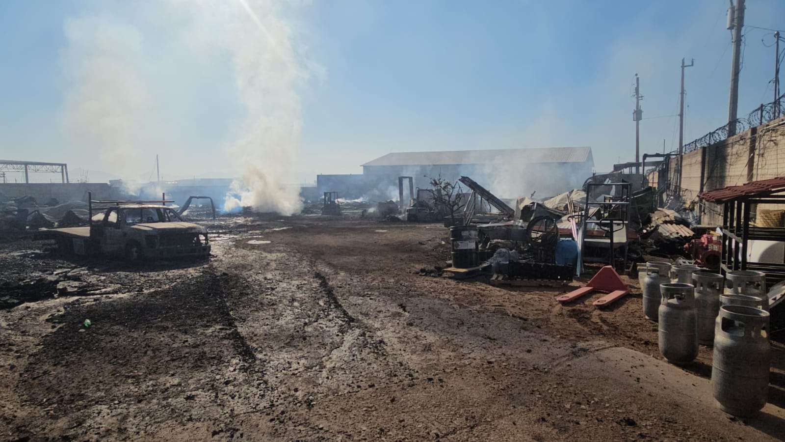 La bodega fue consumida en su totalidad, con colapso de bardas perimetrales.