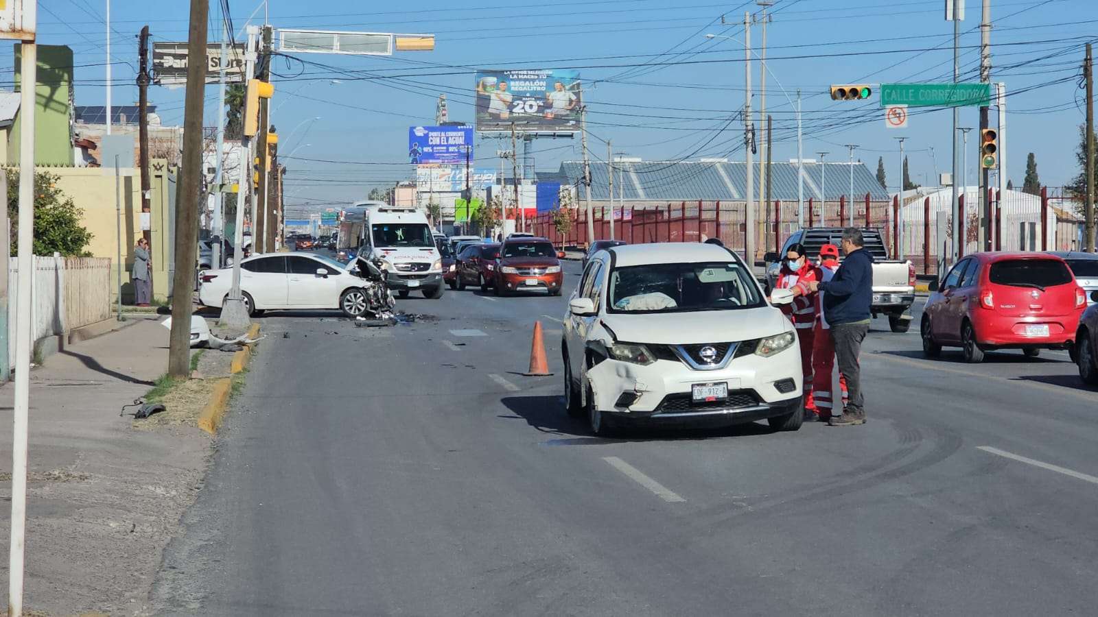 Chihuahua.- La conductora de una camioneta Nissan X-Trail provocó un accidente vial al omitir la luz roja del semáforo en el cruce de la avenida Tecnológico con la calle Corregidora, frente al Centro de Convenciones y Exposiciones de Chihuahua.