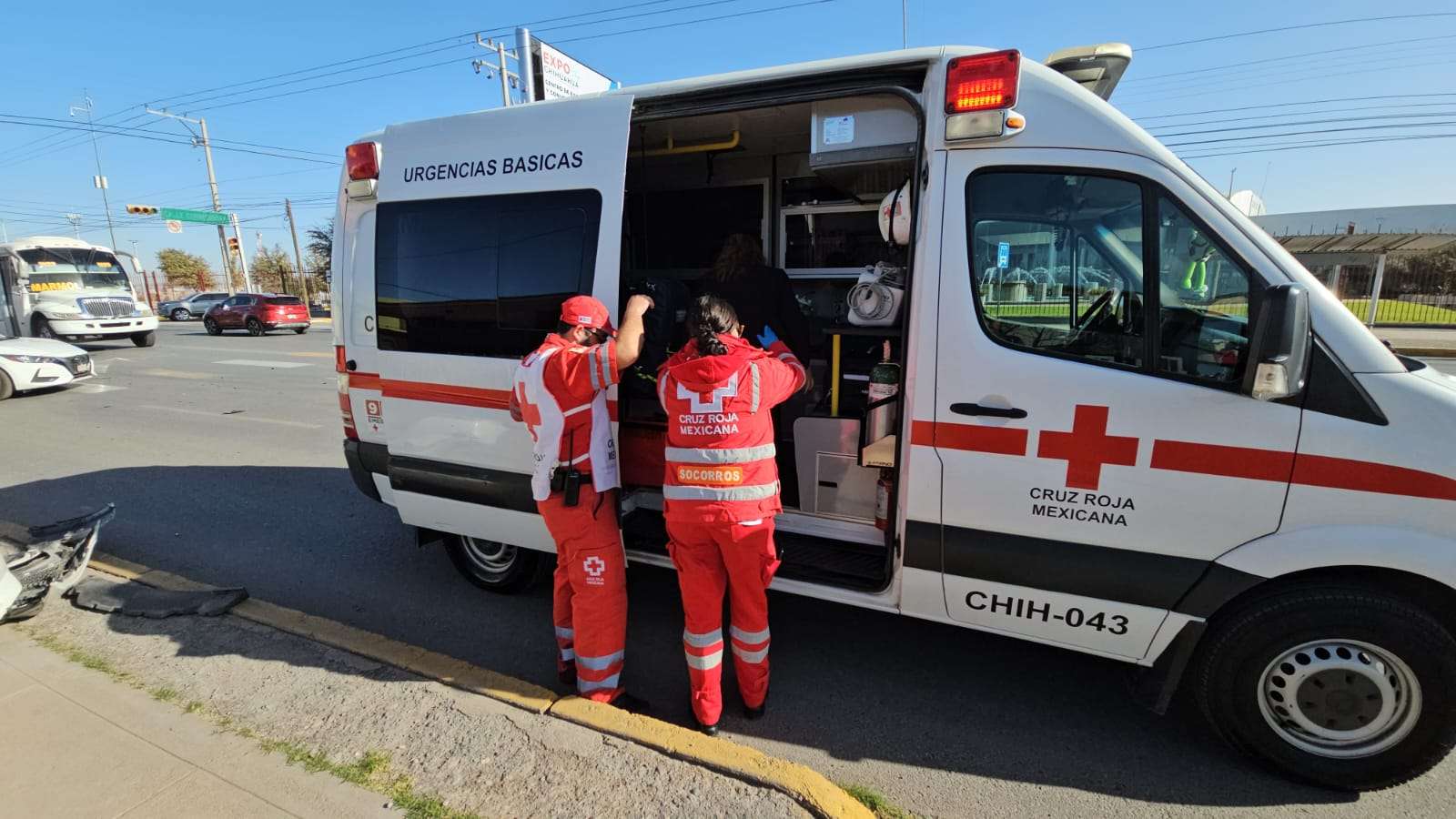 Paramédicos de la Cruz Roja Mexicana atendieron a ambos conductores en el lugar, valorando a la mujer responsable para determinar si requería traslado a un hospital.