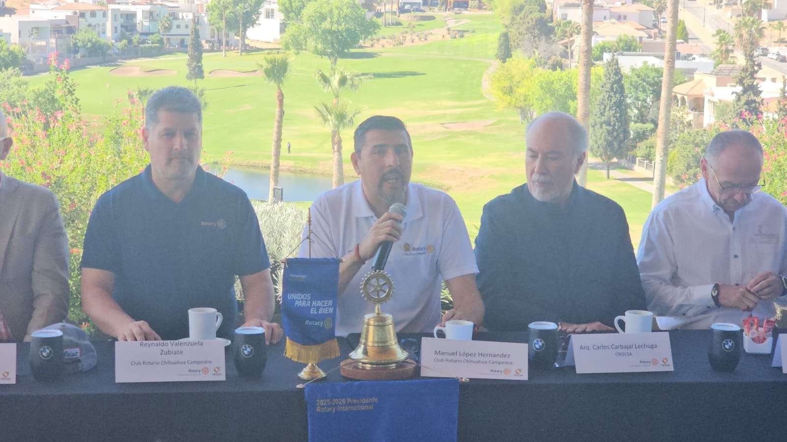 Chihuahua.- En el marco del 40 aniversario del Club Rotario Chihuahua Campestre, el presidente del organismo, Manuel Francisco López Hernández, presentó el Torneo de Golf con Causa, el cual tendrá como objetivo apoyar el programa “Ceguera Evitable” y la construcción de una clínica especializada.