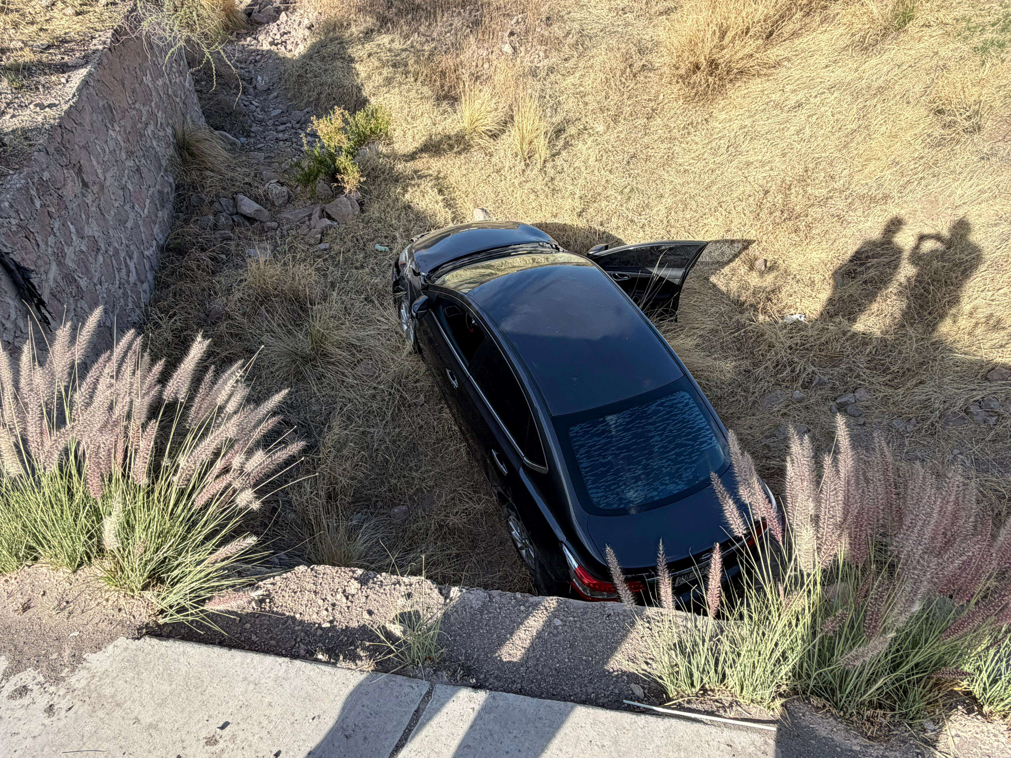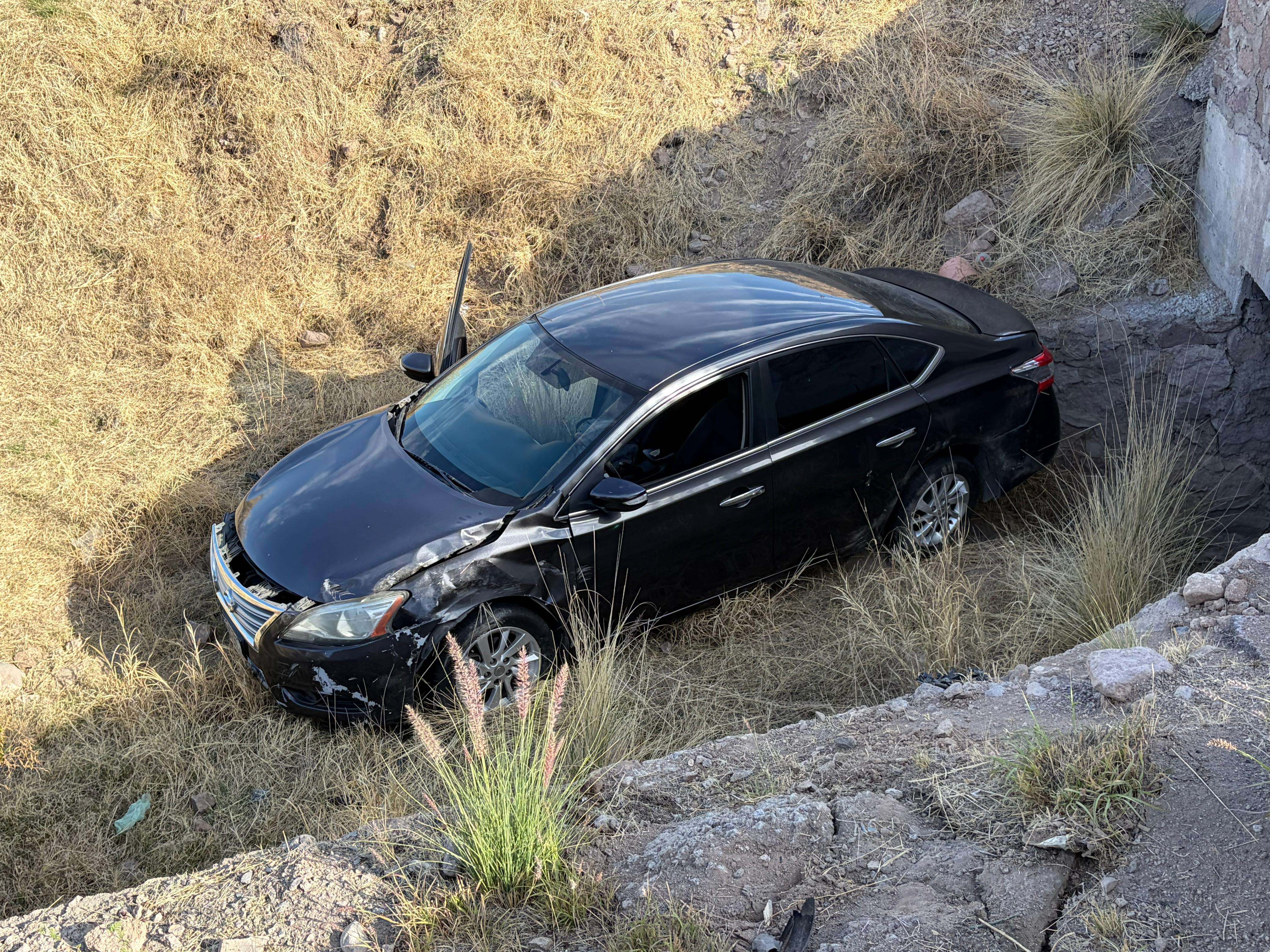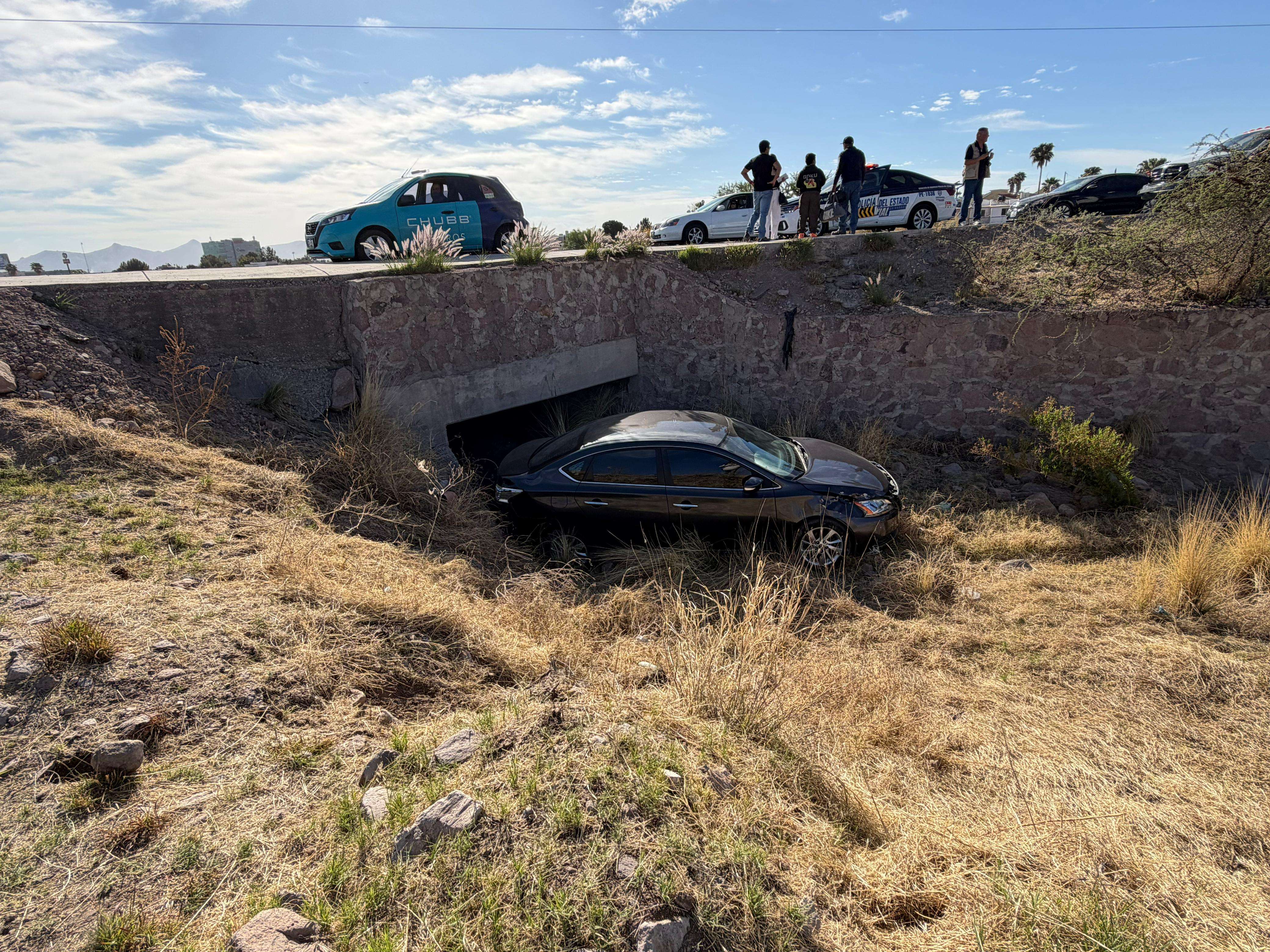 De acuerdo con el reporte, la conductora señaló que el pavimento mojado provocó que al frenar, la unidad comenzara a girar sin control, dando varias piruetas hasta terminar al interior de un arroyo pluvial debidamente canalizado.