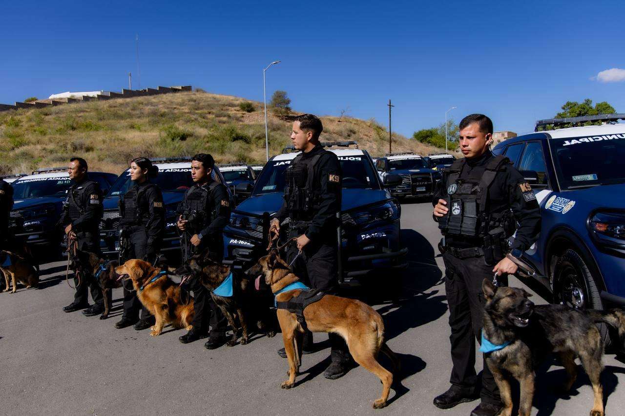 Chihuahua.- El alcalde Marco Bonilla presentó 10 nuevos elementos caninos que se integran al grupo K-9 de la Policía Municipal, fortaleciendo las capacidades de la corporación para detectar drogas, explosivos y participar en operativos estratégicos.