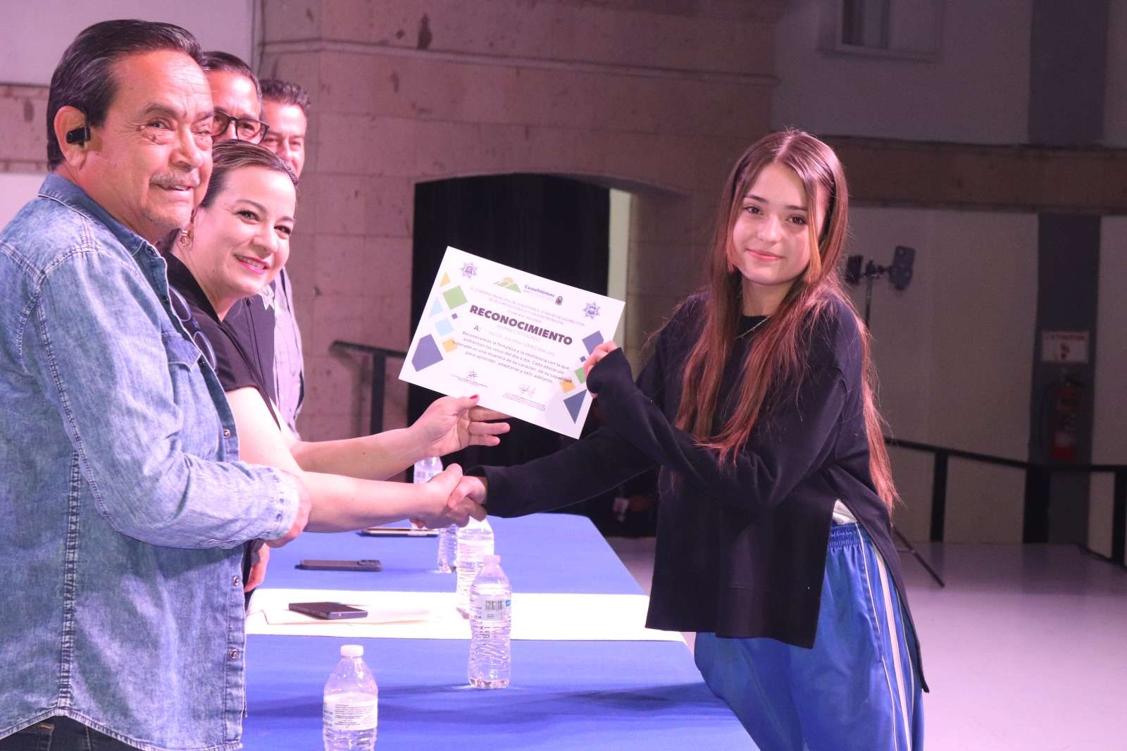 Antes de iniciar con la presentación, un grupo de estudiantes recibieron un reconocimiento por su resiliencia mostrada en este periodo escolar, aquellos que enfrentaron de manera valiente algunos retos personales.
