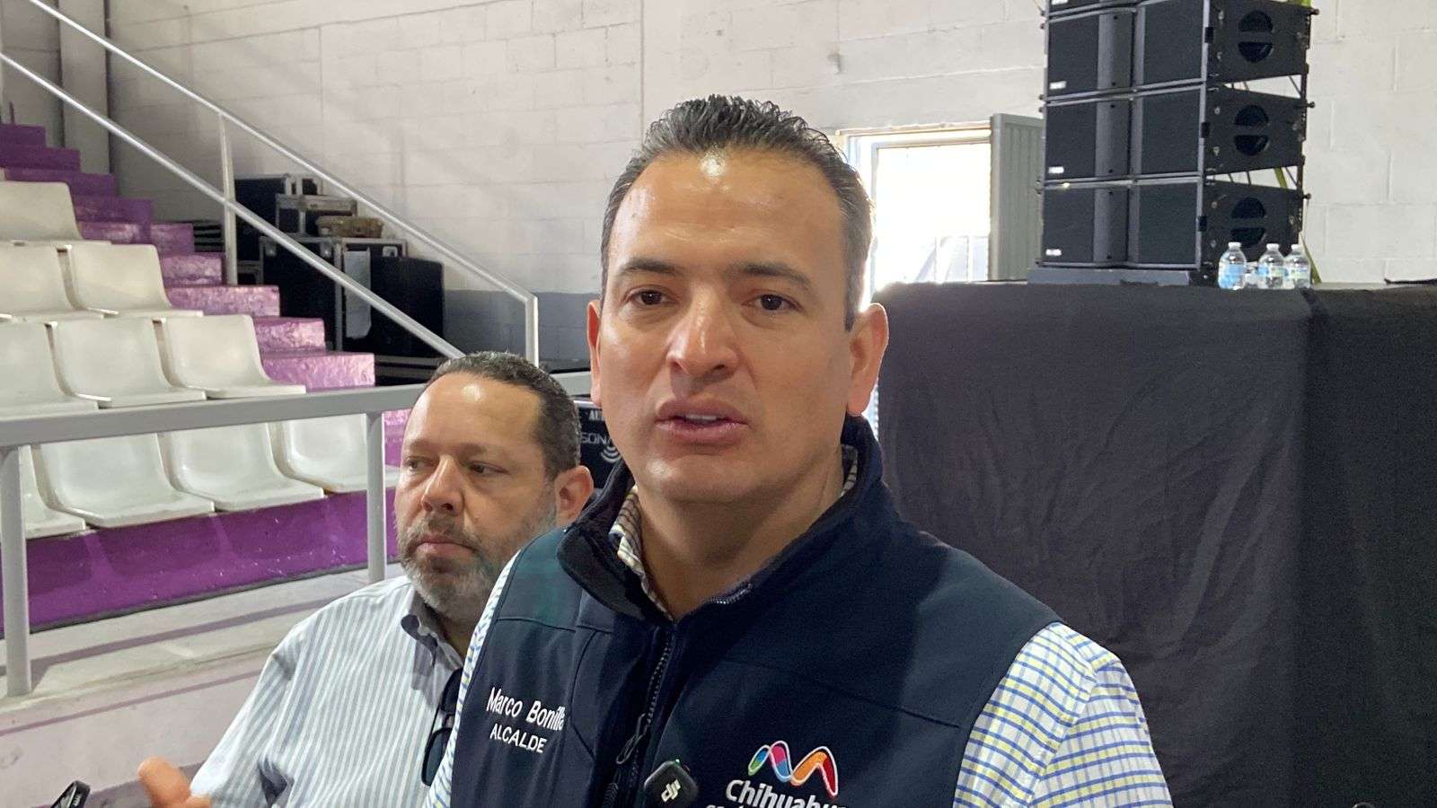 Chihuahua.- El alcalde Marco Antonio Bonilla Mendoza, señaló que las vallas que se colocan desde hace dos años alrededores del edificio de la Presidencia Municipal, son de gobierno del estado por lo que no ocasiona ningún tipo de gasto extra el colocarlas.