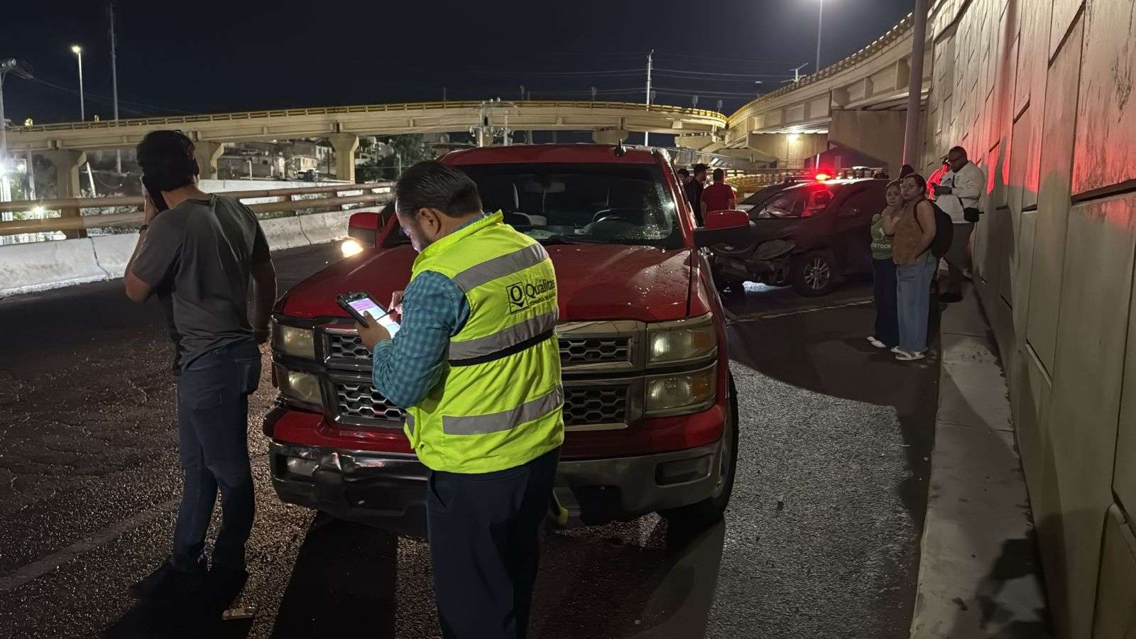 El incidente ocurrió cuando la conductora de un Chevrolet Sonic, que circulaba en sentido oeste a este, perdió el control del volante debido a lo resbaladizo del asfalto. El vehículo quedó atravesado en plena circulación, lo que provocó que una camioneta Peugeot 2008 y una pick-up Chevrolet Silverado de color rojo no pudieran frenar a tiempo, impactándolo.