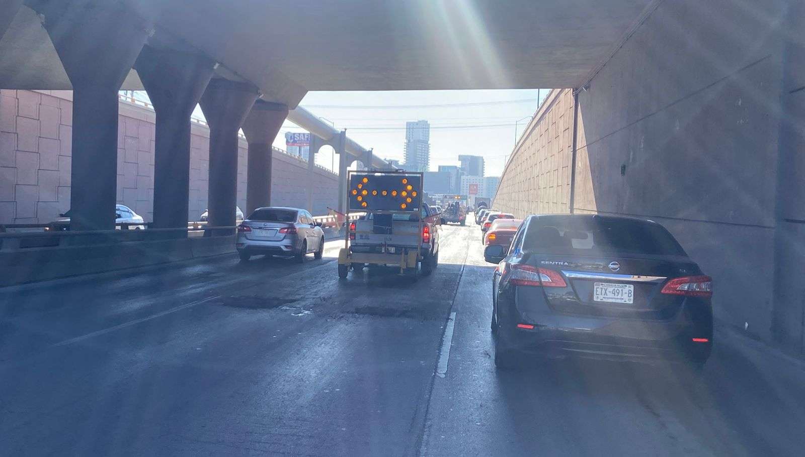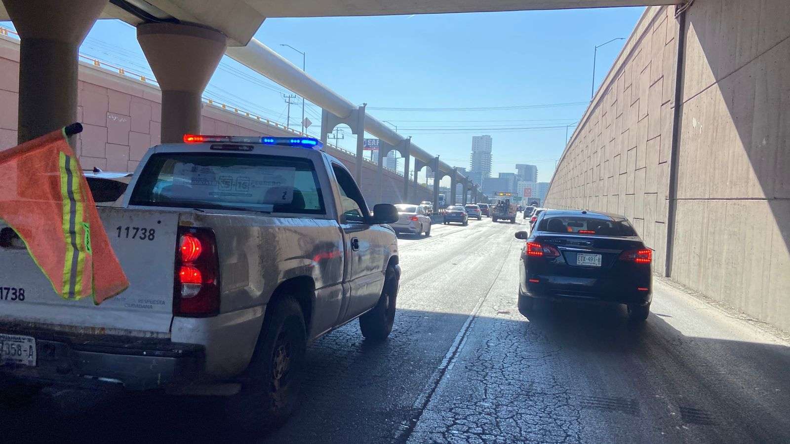 La unidad encargada de realizar el bacheo avanzaba a muy baja velocidad, lo que provocó que el flujo vehicular se tornara lento y que los automovilistas tuvieran que esperar más tiempo de lo habitual para cruzar el tramo intervenido.