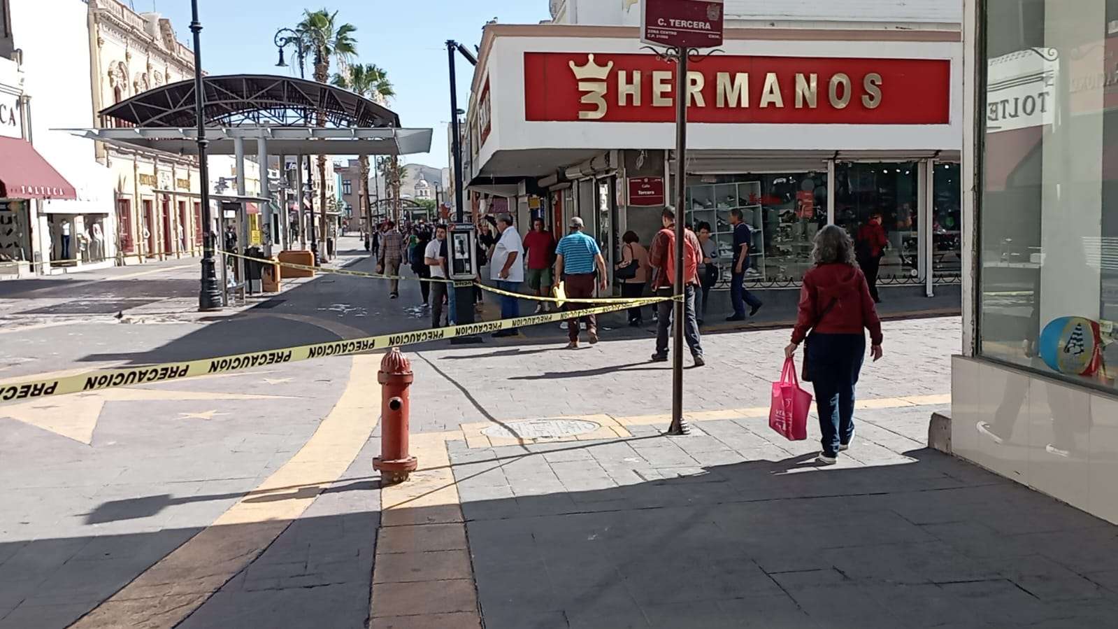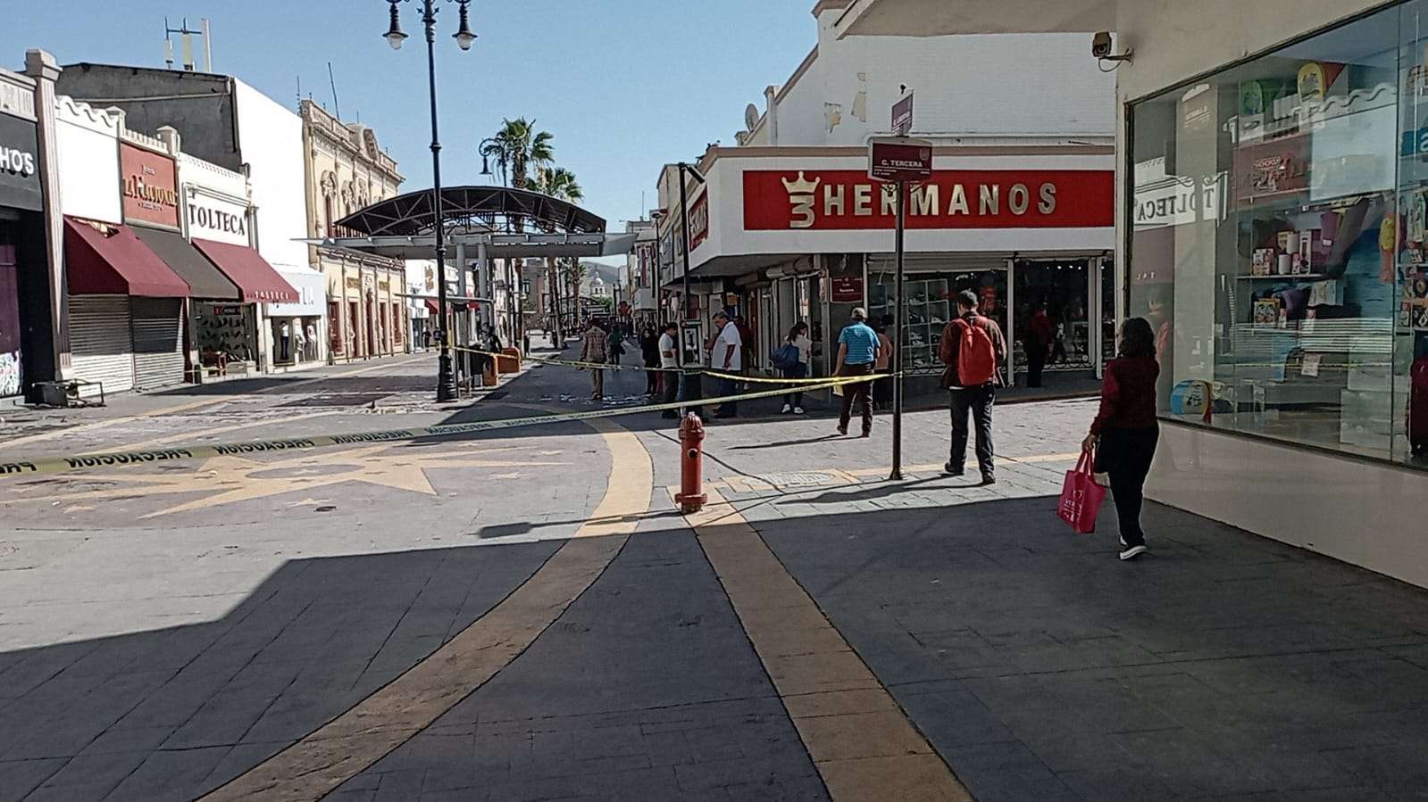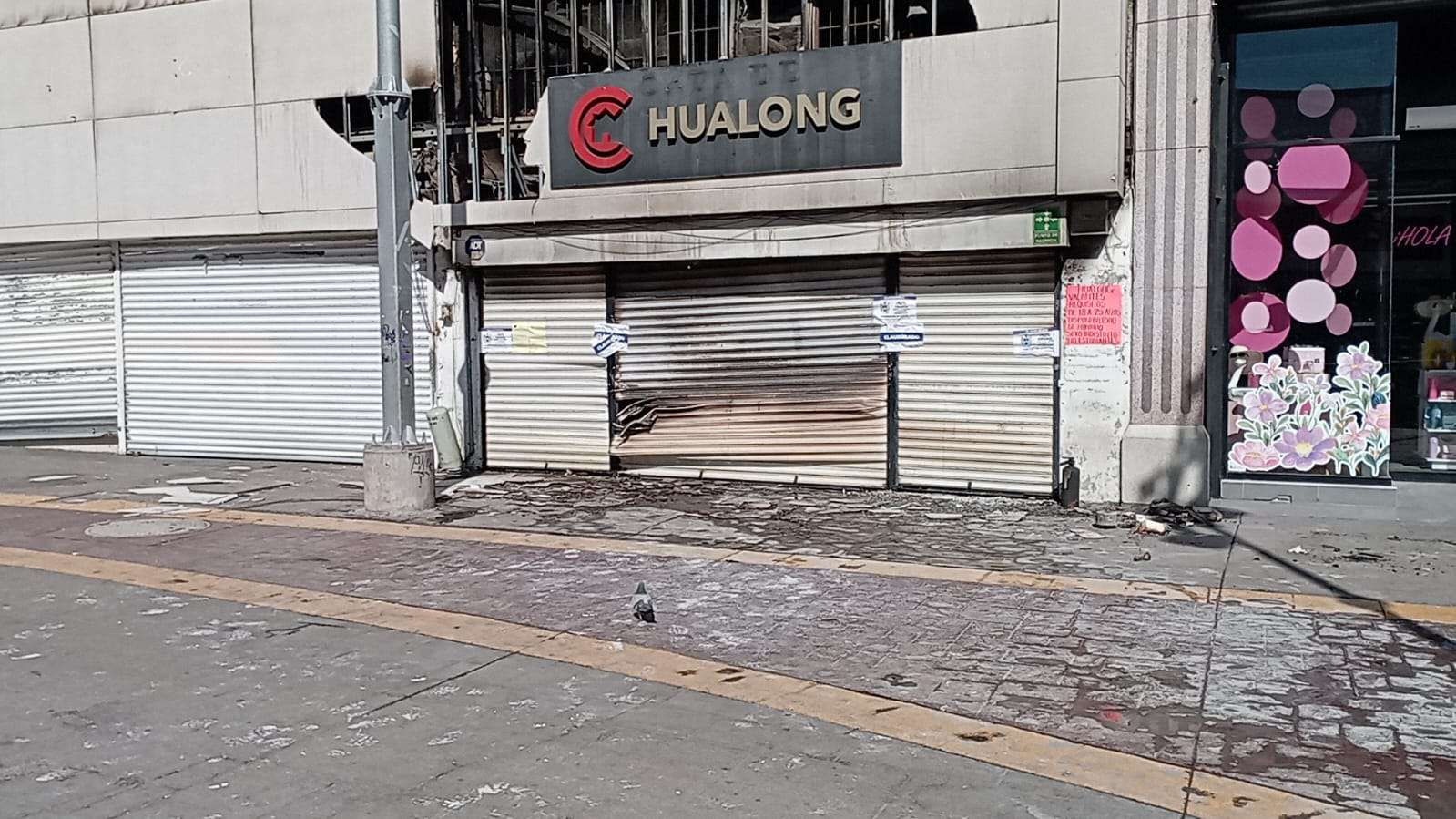Chihuahua.– Autoridades reabrieron la circulación peatonal en la calle Libertad, luego del incendio registrado durante la mañana en el local comercial Hualong ubicado en el cruce con la calle Tercera.