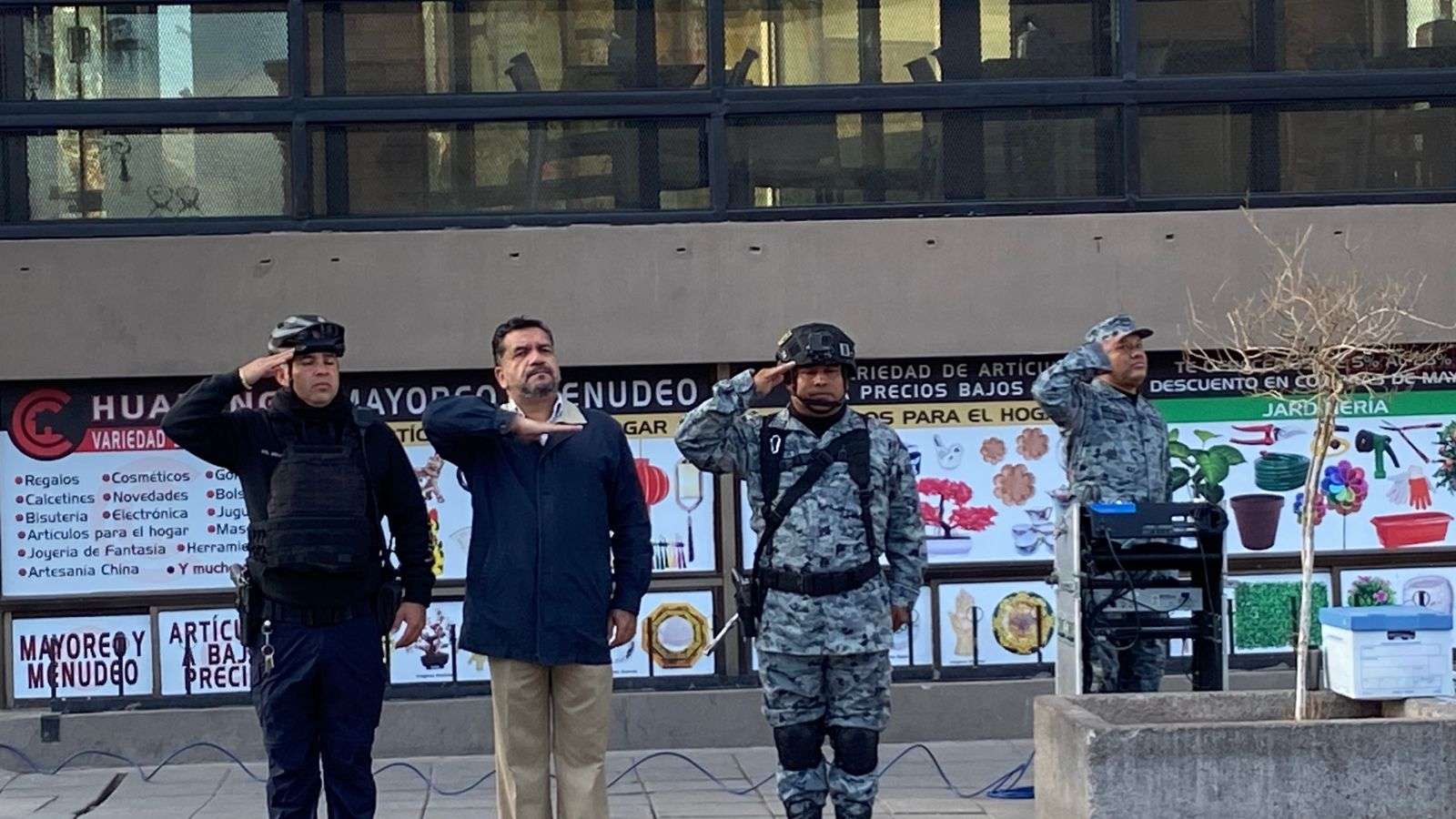 Elementos de la Guardia Nacional y de la Policía Municipal del Grupo Beta realizaron los honores al lábaro patrio, con el toque de bandera y la entonación del Himno Nacional.