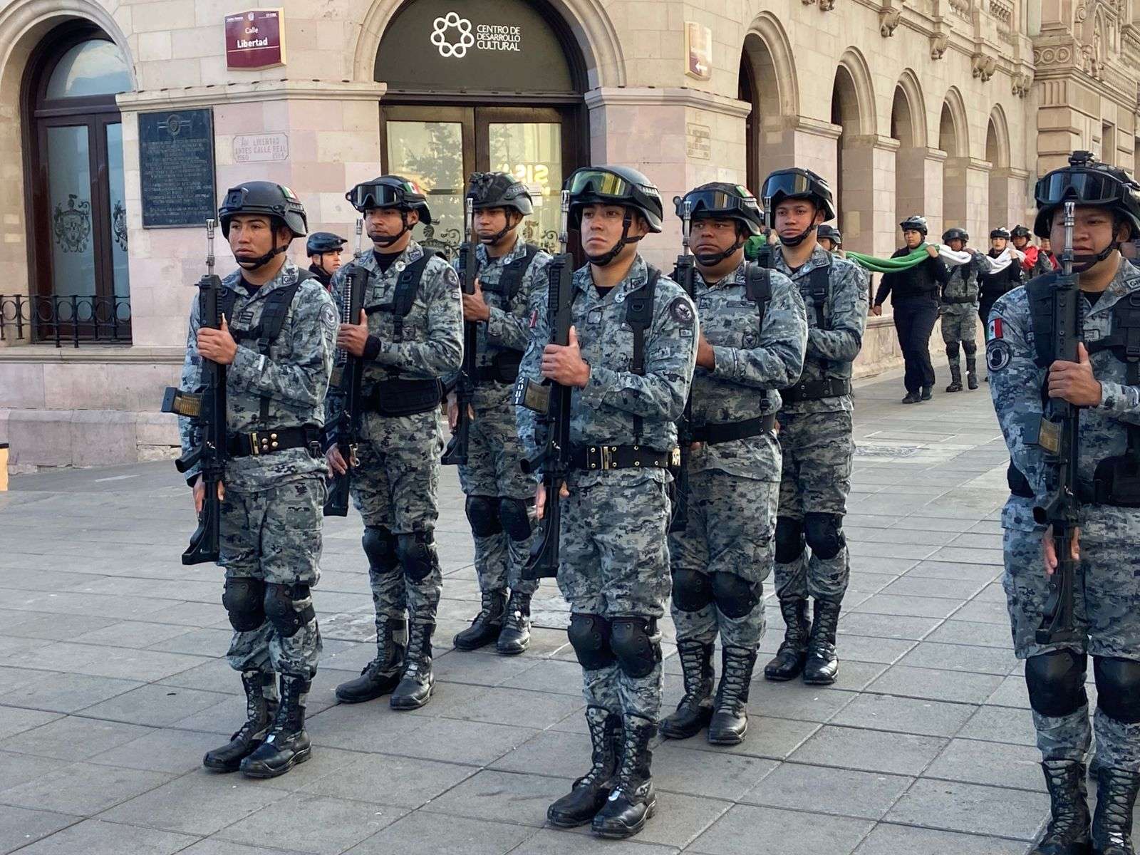 En este acto protocolario participaron la escolta y la corneta de órdenes del 32 Batallón de la Guardia Nacional, así como elementos de tropa, quienes se encargaron de rendir los honores correspondientes al lábaro patrio.