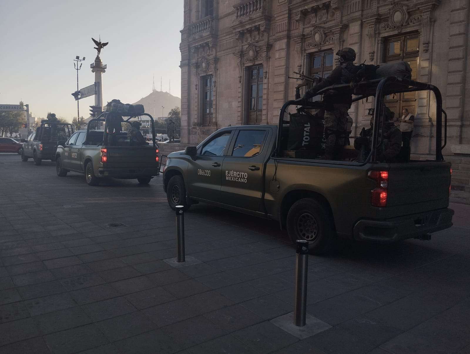 El edificio, ubicado entre las calles Libertad y Vicente Guerrero, permaneció resguardado por personal militar que vigiló el acceso de los asistentes al encuentro de coordinación.