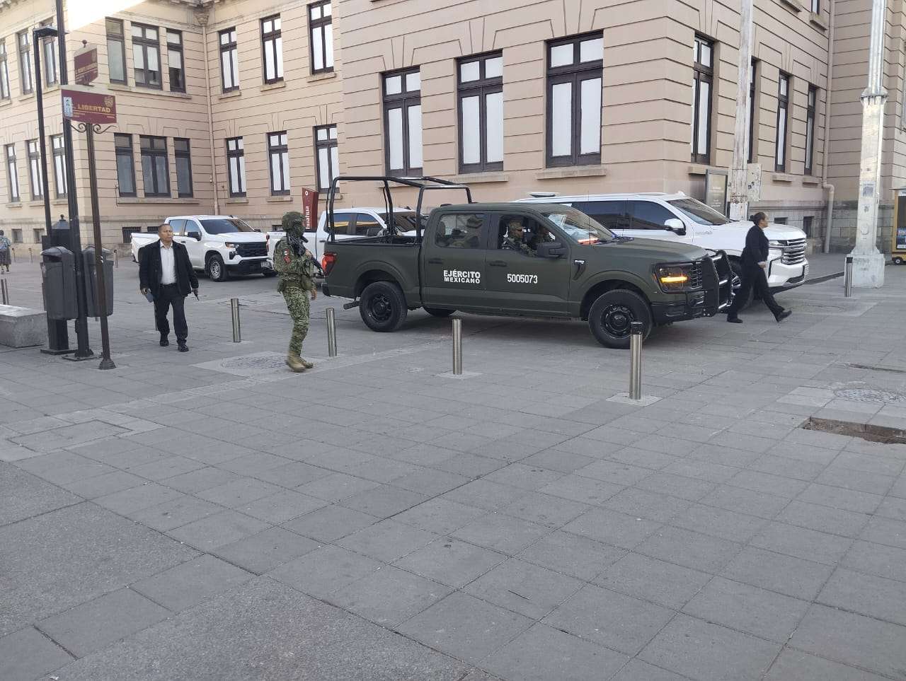 Las entradas y salidas del Palacio de Gobierno fueron resguardadas por elementos de la Guardia Nacional, la SEDENA y la Fiscalía.