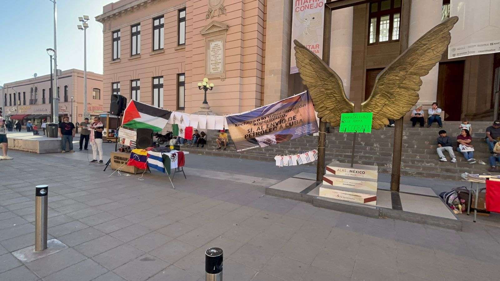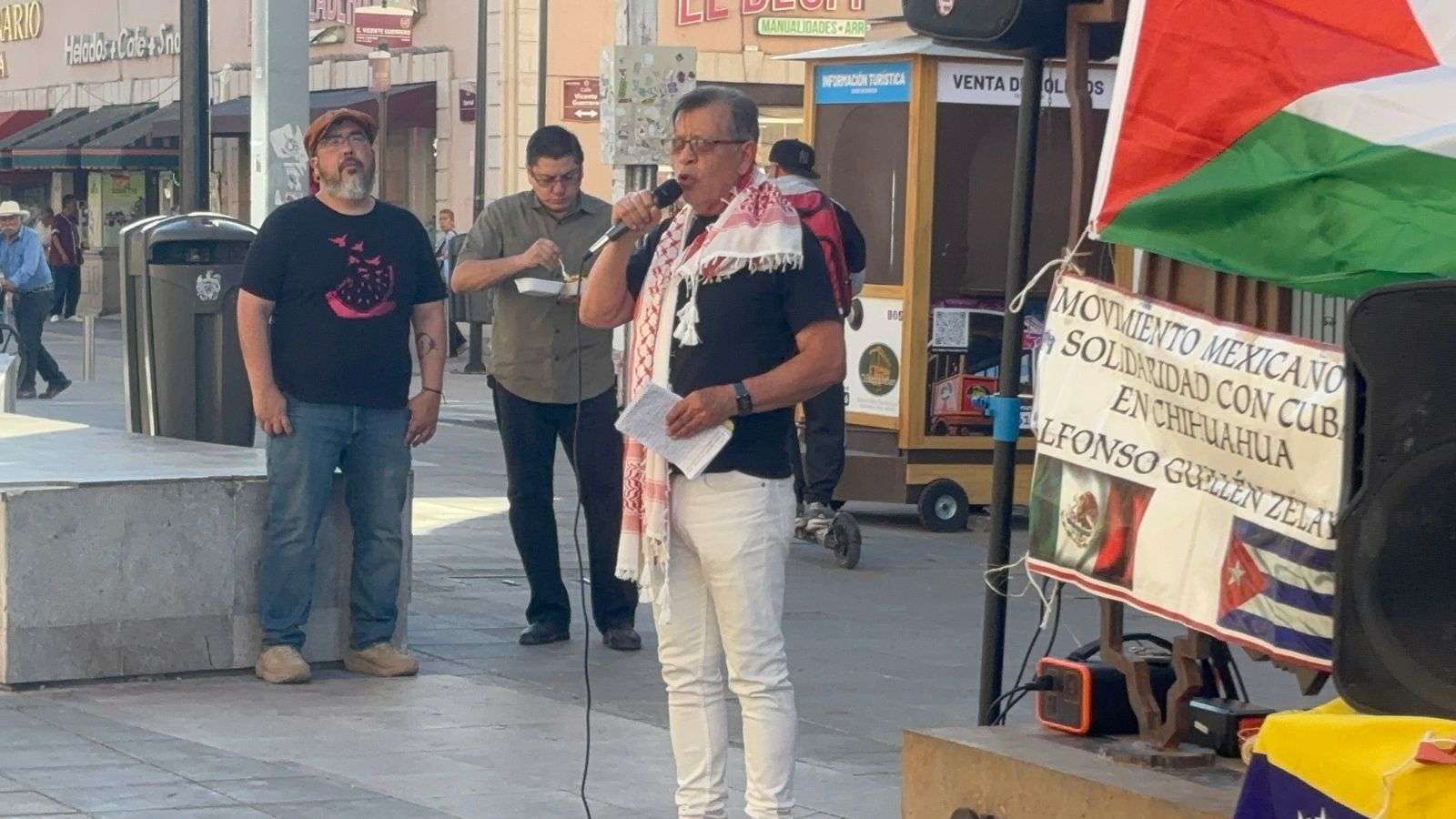Chihuahua. - Integrantes del Movimiento Mexicano de Solidaridad con Cuba " en Chihuahua Alfonso Guillén Zelaya se manifestaron este sábado en el centro histórico para rechazar el embargo económico contra la isla y denunciar la "subordinación imperialista".