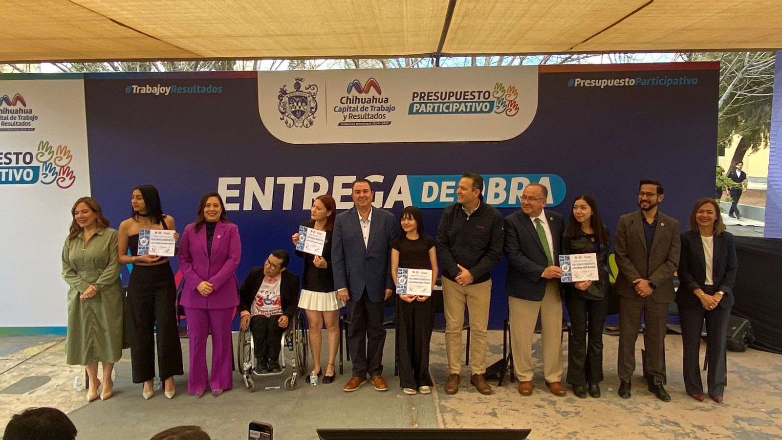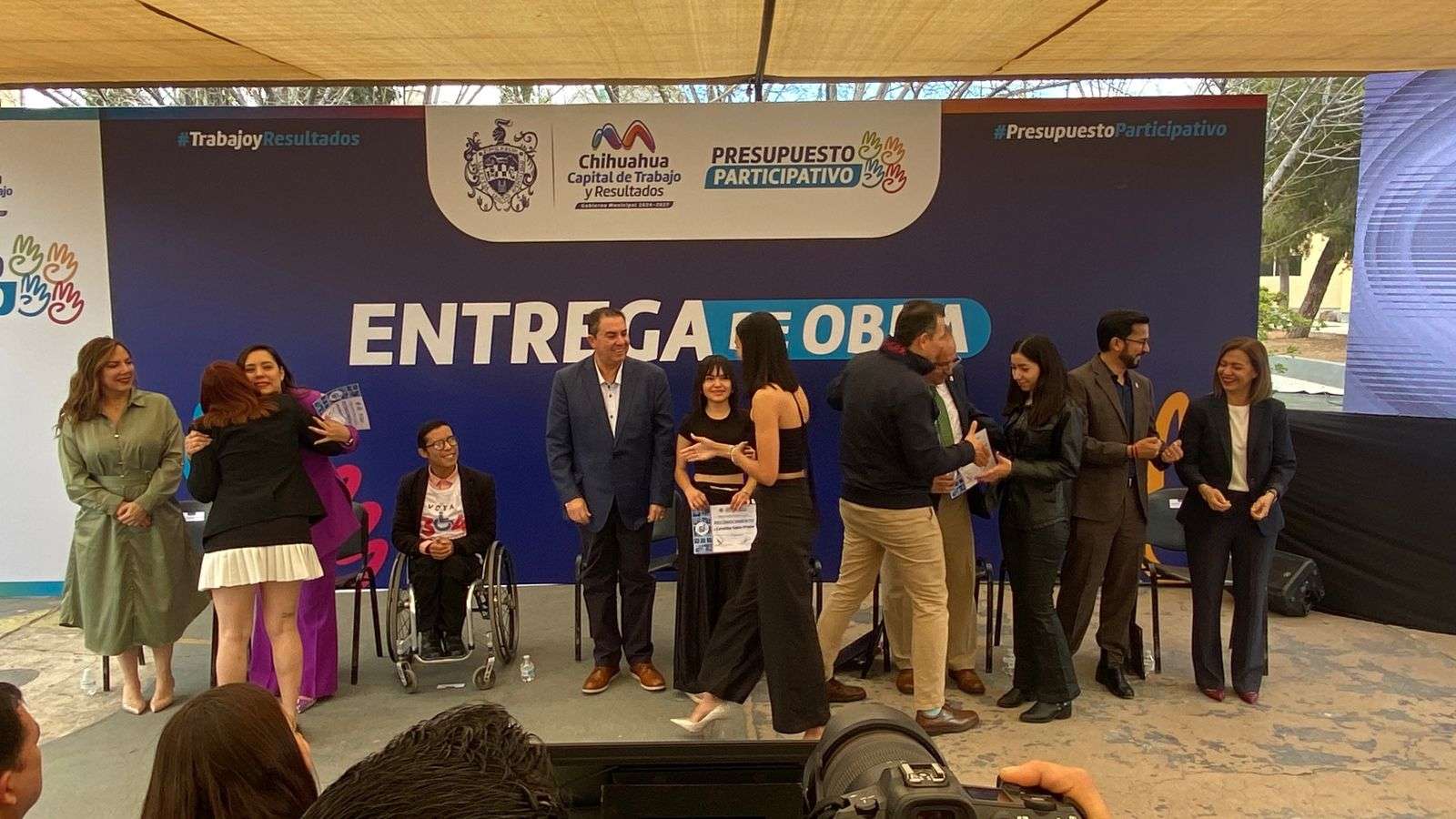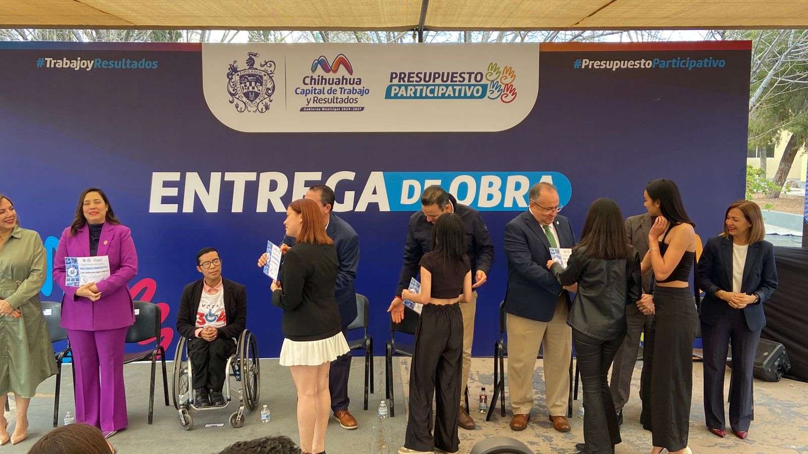 Chihuahua.- Dentro del marco de la entrega de la obra del presupuesto participativo en la Facultad de ciencias Políticas y Sociales se reconoció a cuatro estudiantes que ganaron con 4 proyectos ciudadanos.