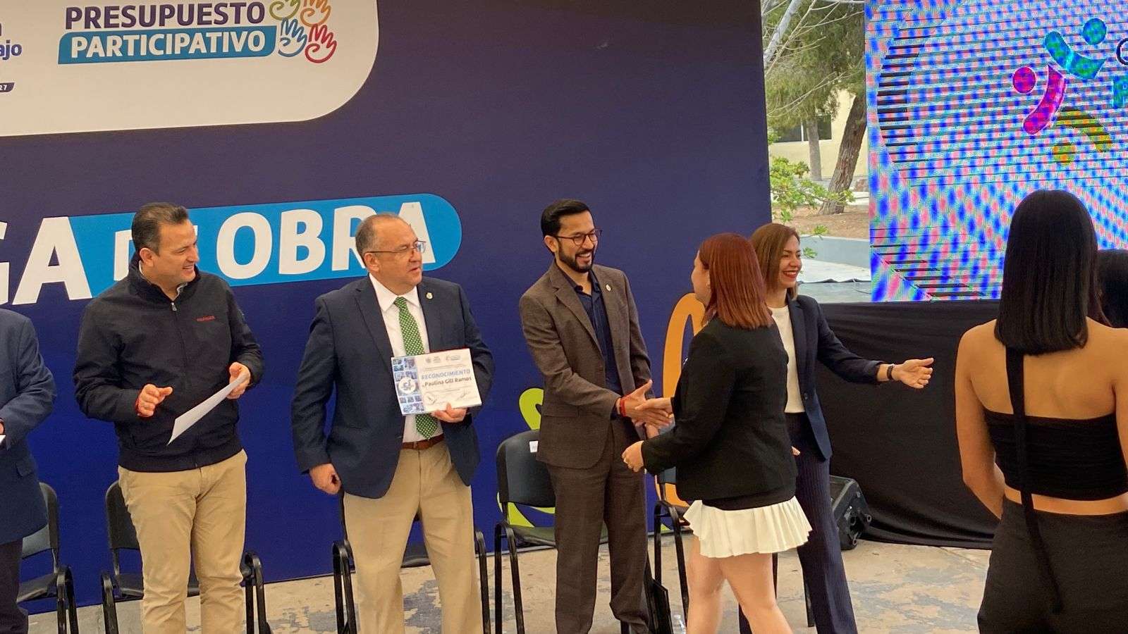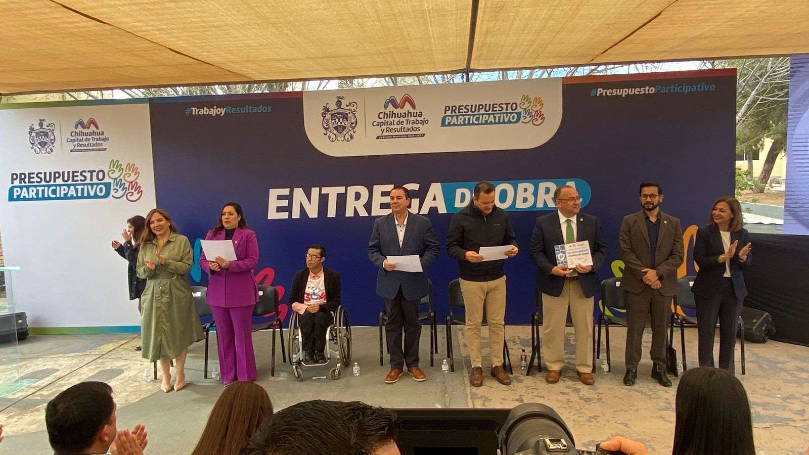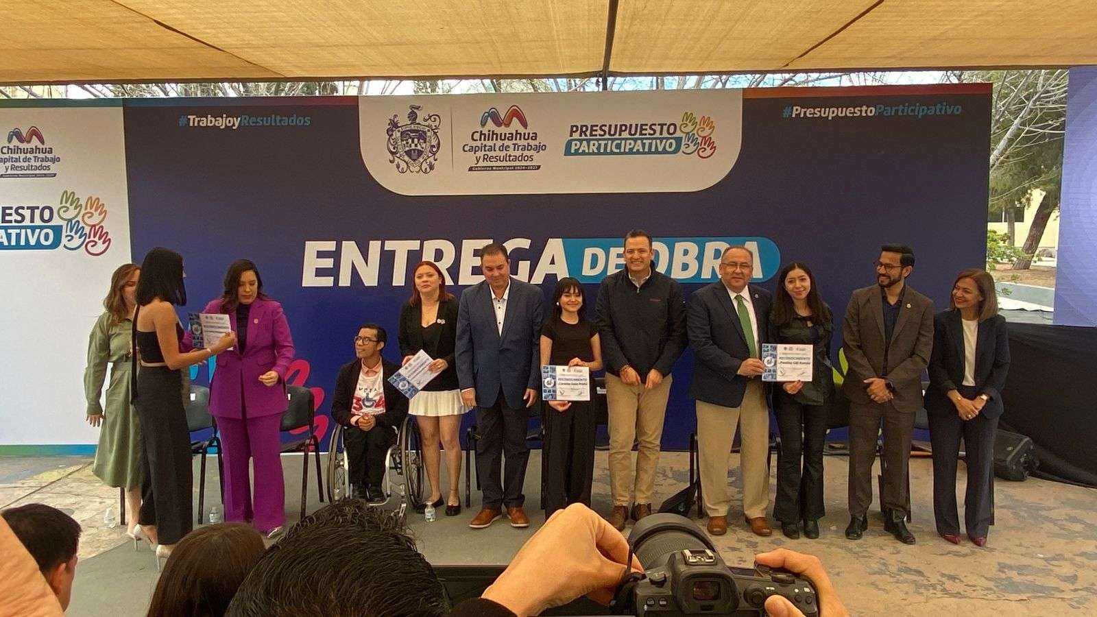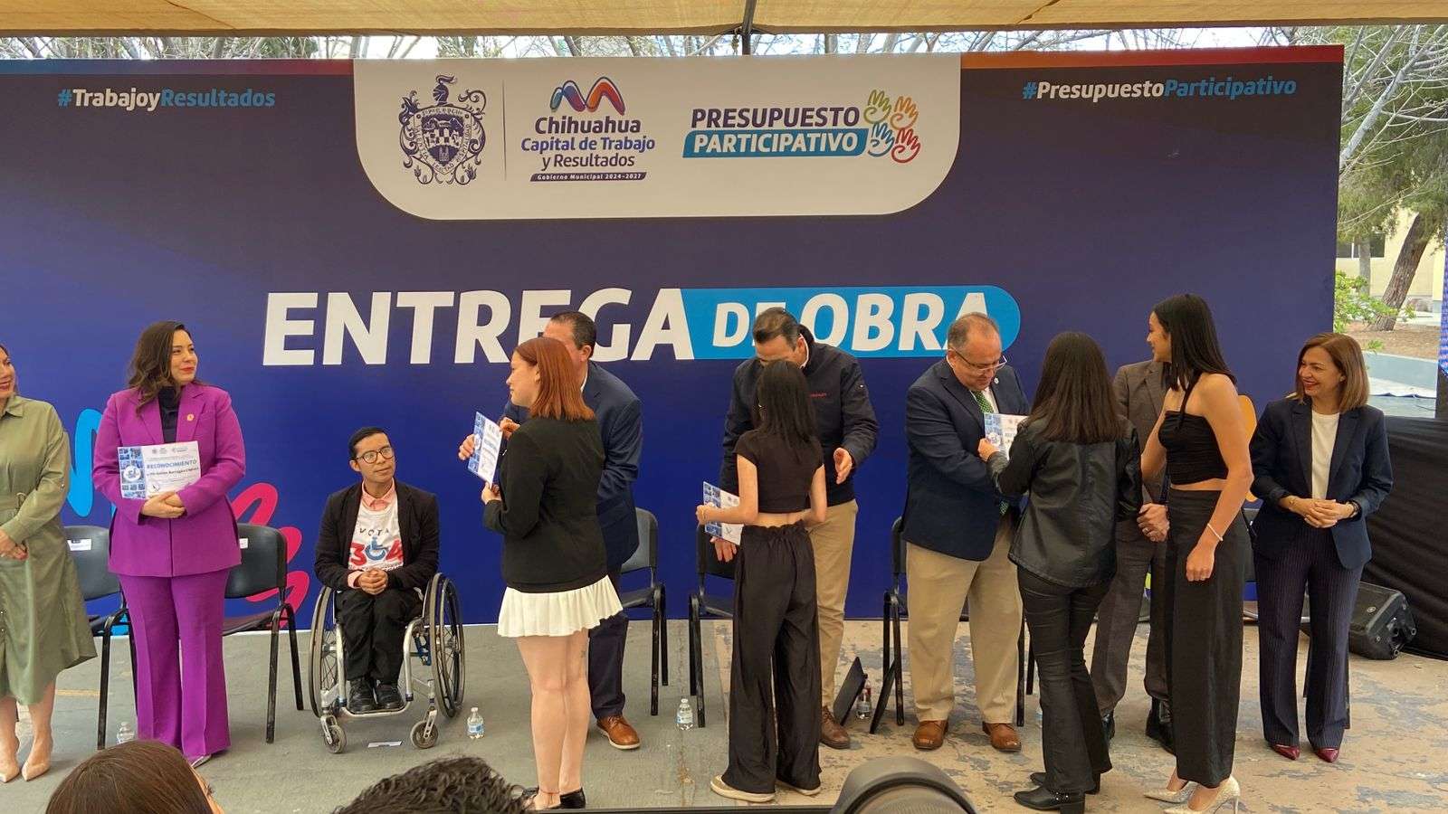 Chihuahua.- Dentro del marco de la entrega de la obra del presupuesto participativo en la Facultad de ciencias Políticas y Sociales se reconoció a cuatro estudiantes que ganaron con 4 proyectos ciudadanos.