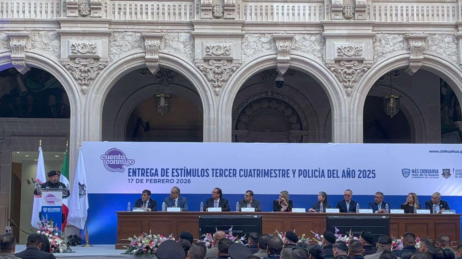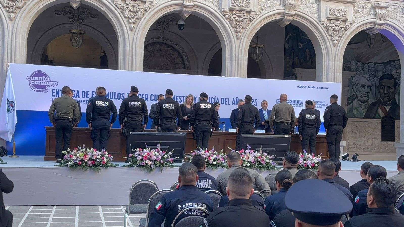 Chihuahua, Chih.- Como parte de la dignificación policial y en cumplimiento con la Ley del Sistema Estatal de Seguridad Pública, este martes se reconoció el desempeño sobresaliente de 58 policías estatales.