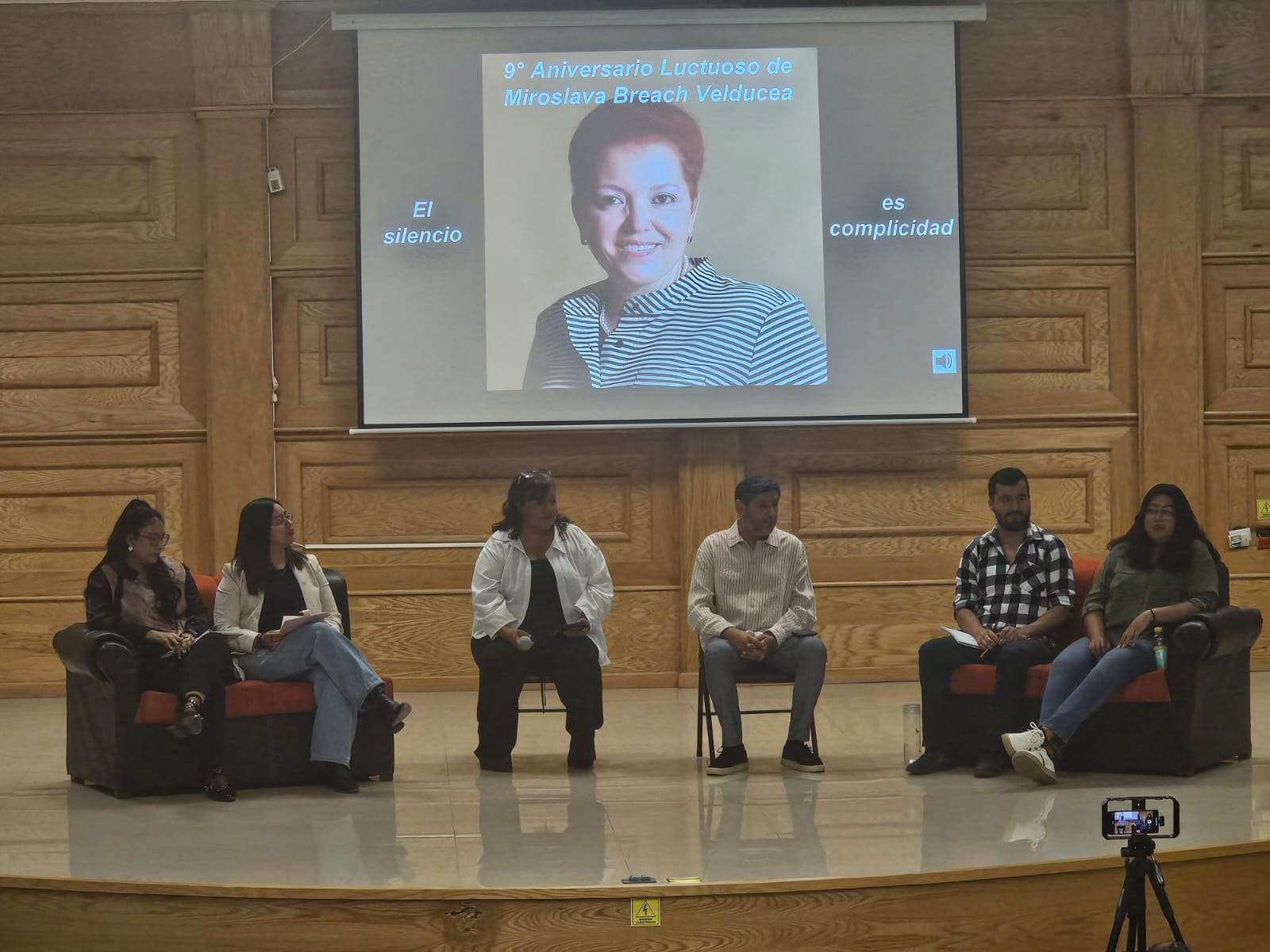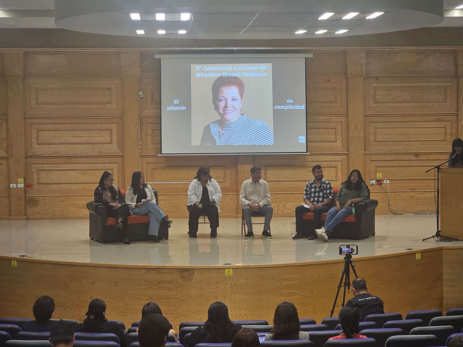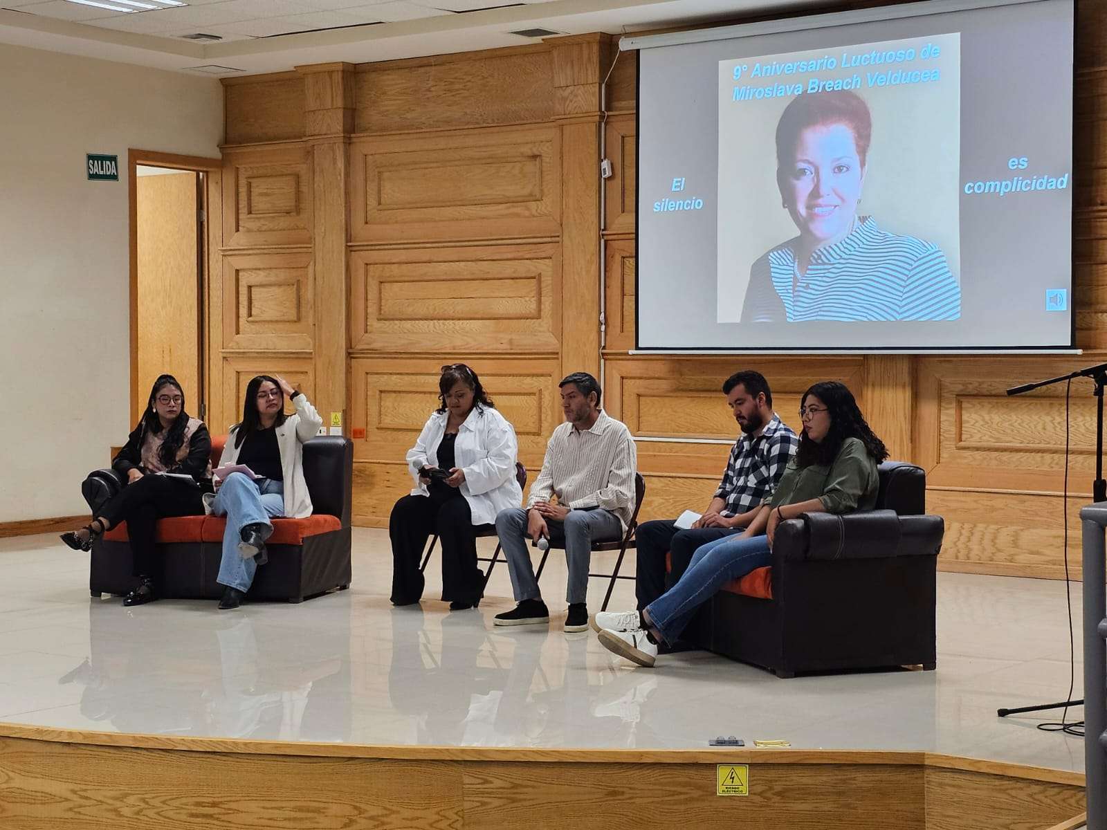 Chihuahua.- Se llevó a cabo el conversatorio “Nueve años sin Miroslava: ¿Qué enfrenta el periodismo en Chihuahua?”, en el Polyforum de la Facultad de Filosofía y Letras de la Universidad Autónoma de Chihuahua, con la participación de los periodistas Patricia Mayorga, Óscar Rosales, Karla Quintana, Rolando Nájera, Alejandra Sánchez y Katherine Gallegos.
