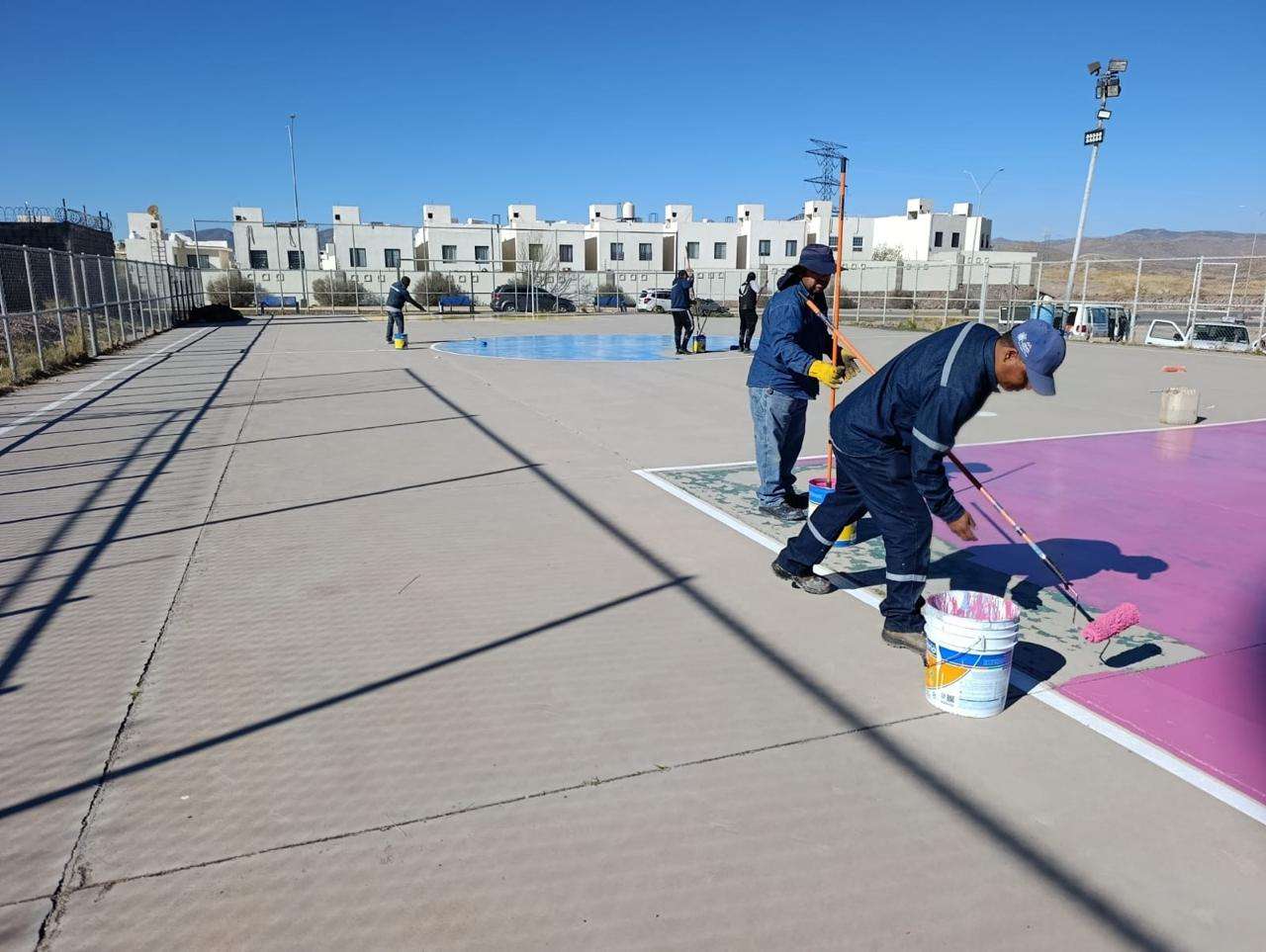 Entre los trabajos realizados se encuentran la reparación e instalación de malla ciclónica en canchas, la reparación y sustitución de tableros de básquetbol, pintura en áreas de juego y graderías, rehabilitación de paredes en canchas de fútbol rápido, así como el mantenimiento de los aires acondicionados en los cuatro centros deportivos municipales.