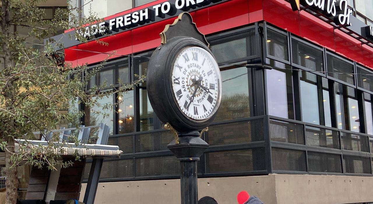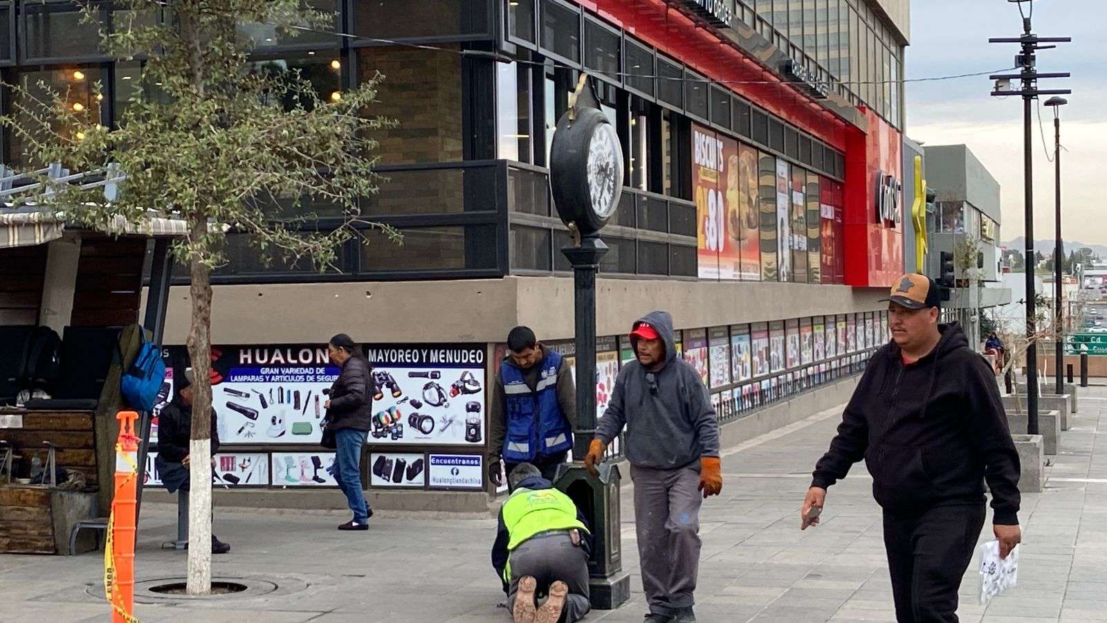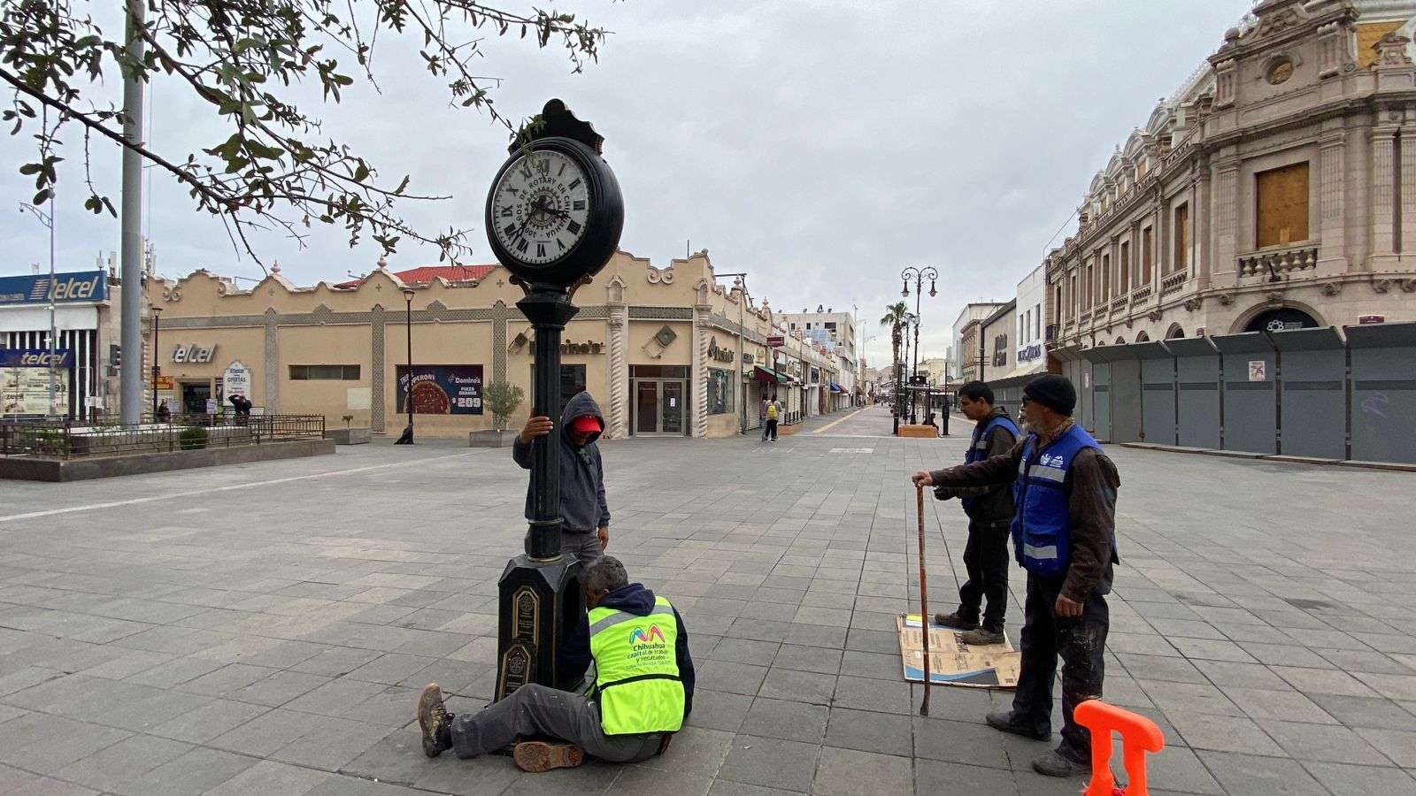Chihuahua.- Una cuadrilla de trabajadores de Mantenimiento Urbano instaló de nueva cuenta el reloj que el Club Rotario de Chihuahua colocó en Libertad e Independencia.